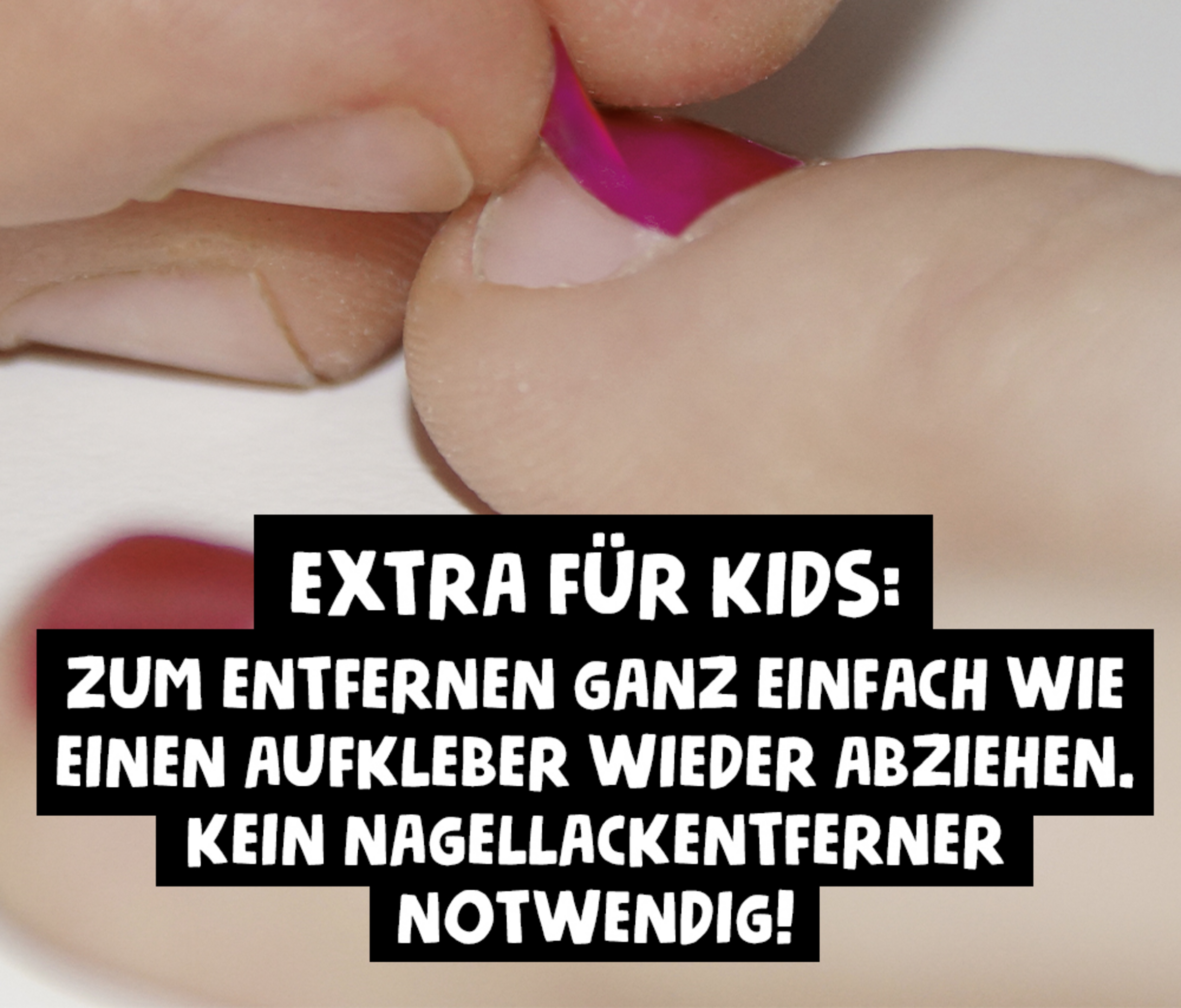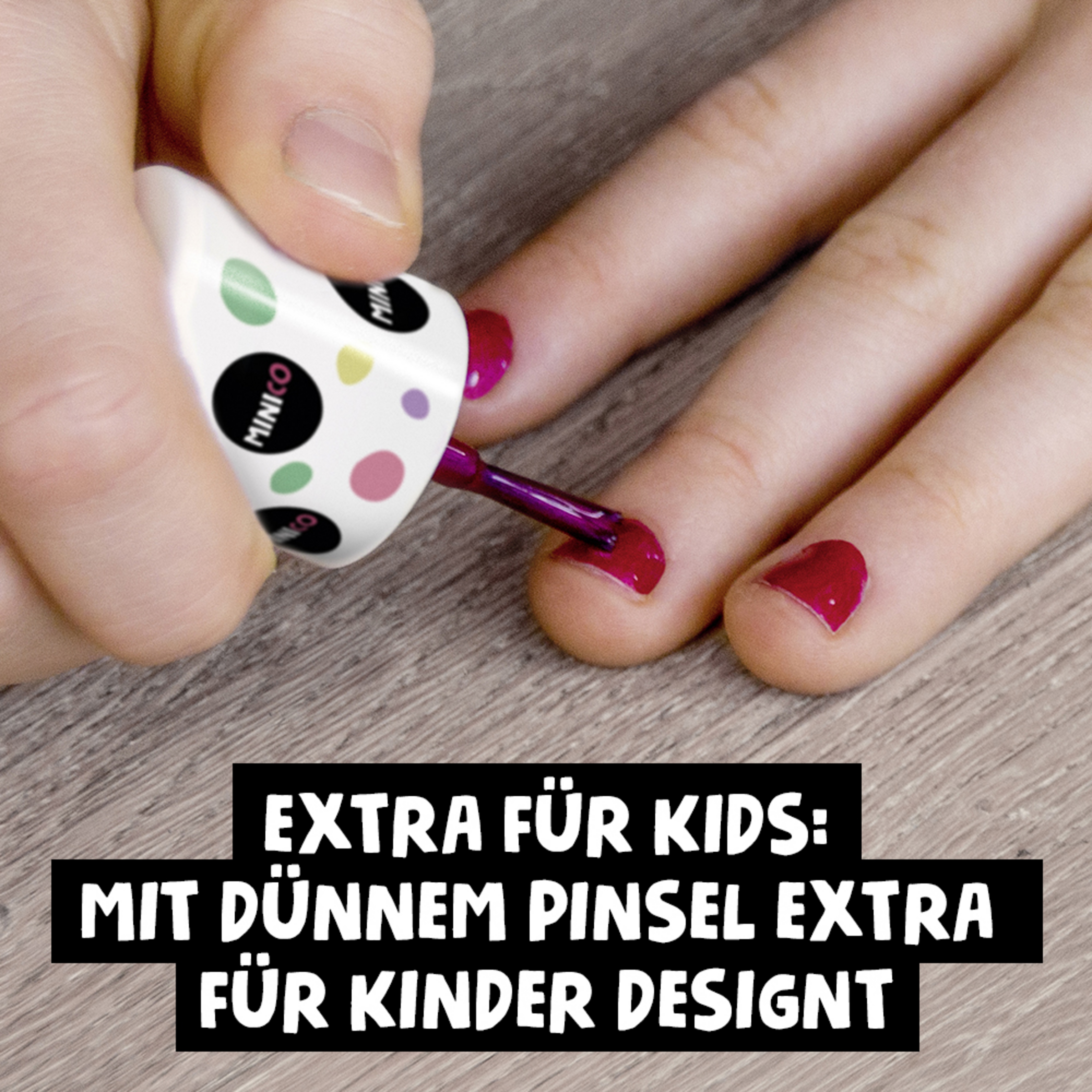 Extra für Kids: Mit speziellem Pinsel für kleine Kindernägel designt.