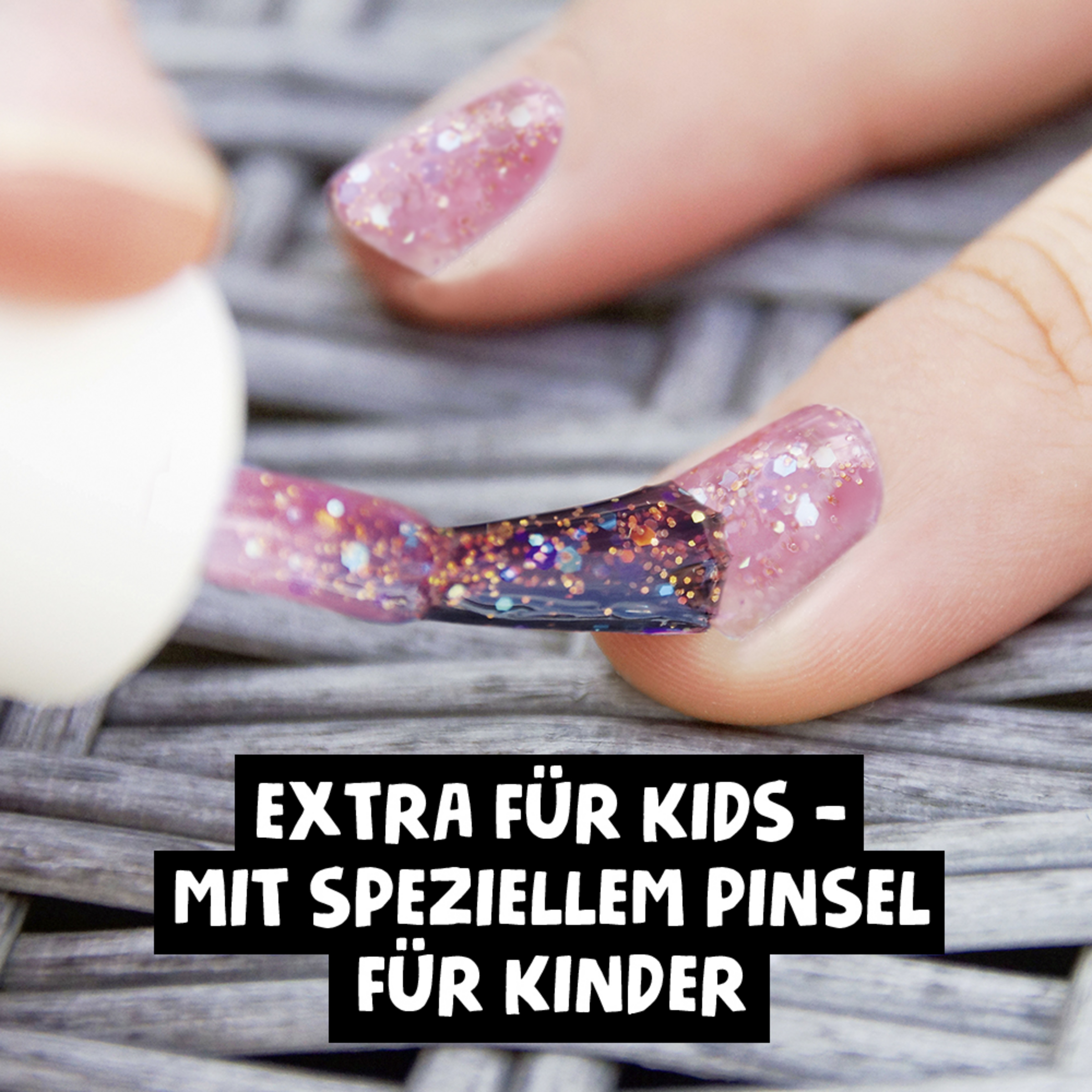 Extra für Kids: Mit speziellem Pinsel für kleine Kindernägel designt.