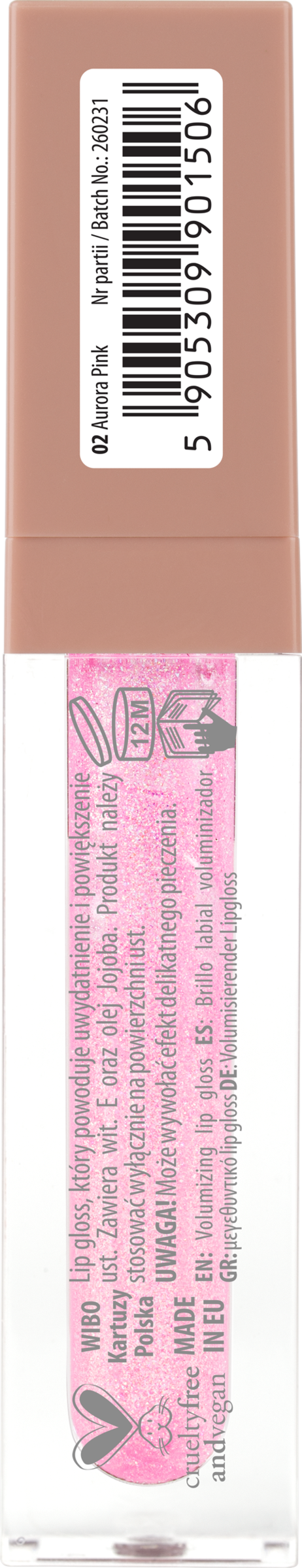 Lipgloss, der die Lippen hervorhebt und vergrößert, mit einem praktischen JUMBO-Applikator, der ein schnelles und bequemes Auftragen des Produkts auf die Lippen ermöglicht. Enthält Vitamin E und Jojobaöl. Das Produkt sollte nur auf die Oberfläche der Lippen aufgetragen werden, um sie zu verschönern.