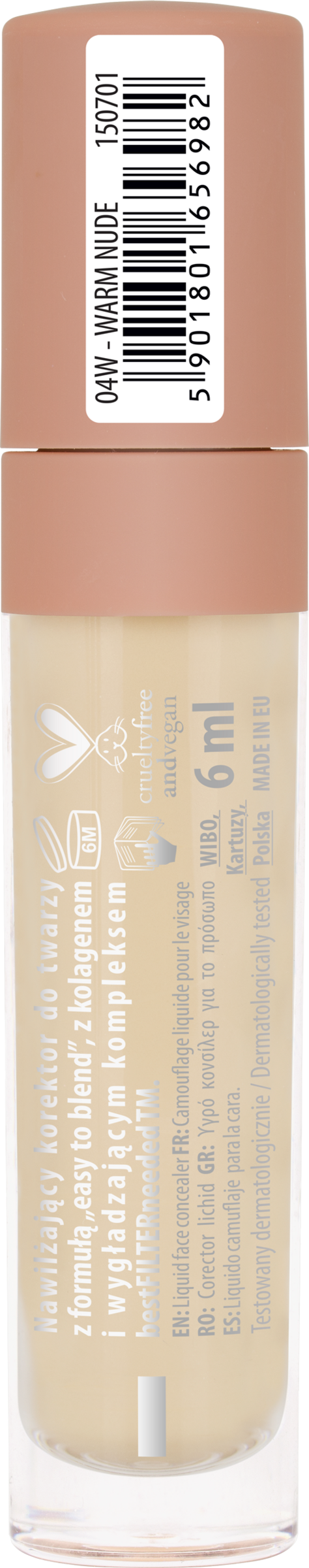Angenehm cremig, langanhaltend und brillant mit dem Hautton verschmelzend, enthält der Concealer pflanzliches Kollagen aus senegalesischer Akazie und den innovativen BestFILTERneeded-Komplex, der feine Linien optisch glättet und Unregelmäßigkeiten kaschiert. Er ist auch für den traumhaften Unschärfeeffekt im Make-up-Finish verantwortlich. Er versorgt die Haut langanhaltend mit Feuchtigkeit, nährt sie und schützt sie vor oxidativem Stress, Umweltverschmutzung und Wasserverlust. Unaufdringlich und hautnah.
