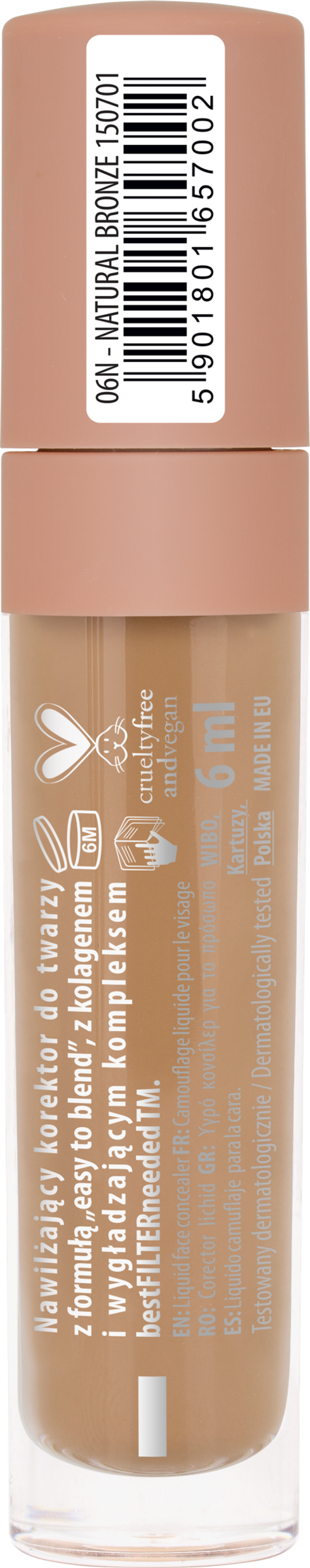 Angenehm cremig, langanhaltend und brillant mit dem Hautton verschmelzend, enthält der Concealer pflanzliches Kollagen aus senegalesischer Akazie und den innovativen BestFILTERneeded-Komplex, der feine Linien optisch glättet und Unregelmäßigkeiten kaschiert. Er ist auch für den traumhaften Unschärfeeffekt im Make-up-Finish verantwortlich. Er versorgt die Haut langanhaltend mit Feuchtigkeit, nährt sie und schützt sie vor oxidativem Stress, Umweltverschmutzung und Wasserverlust. Unaufdringlich und hautnah. Erhältlich in bis zu 6 Farbtönen, die zu jedem Teint passen.Ein pflegender veganer Gesichts-Concealer mit Applikator und leicht zu verblendender Formel. Eine Kombination aus flexibler und leichter Formel, brillanter Deckkraft, Aufhellung und natürlicher Pflege für die empfindliche Augenpartie.