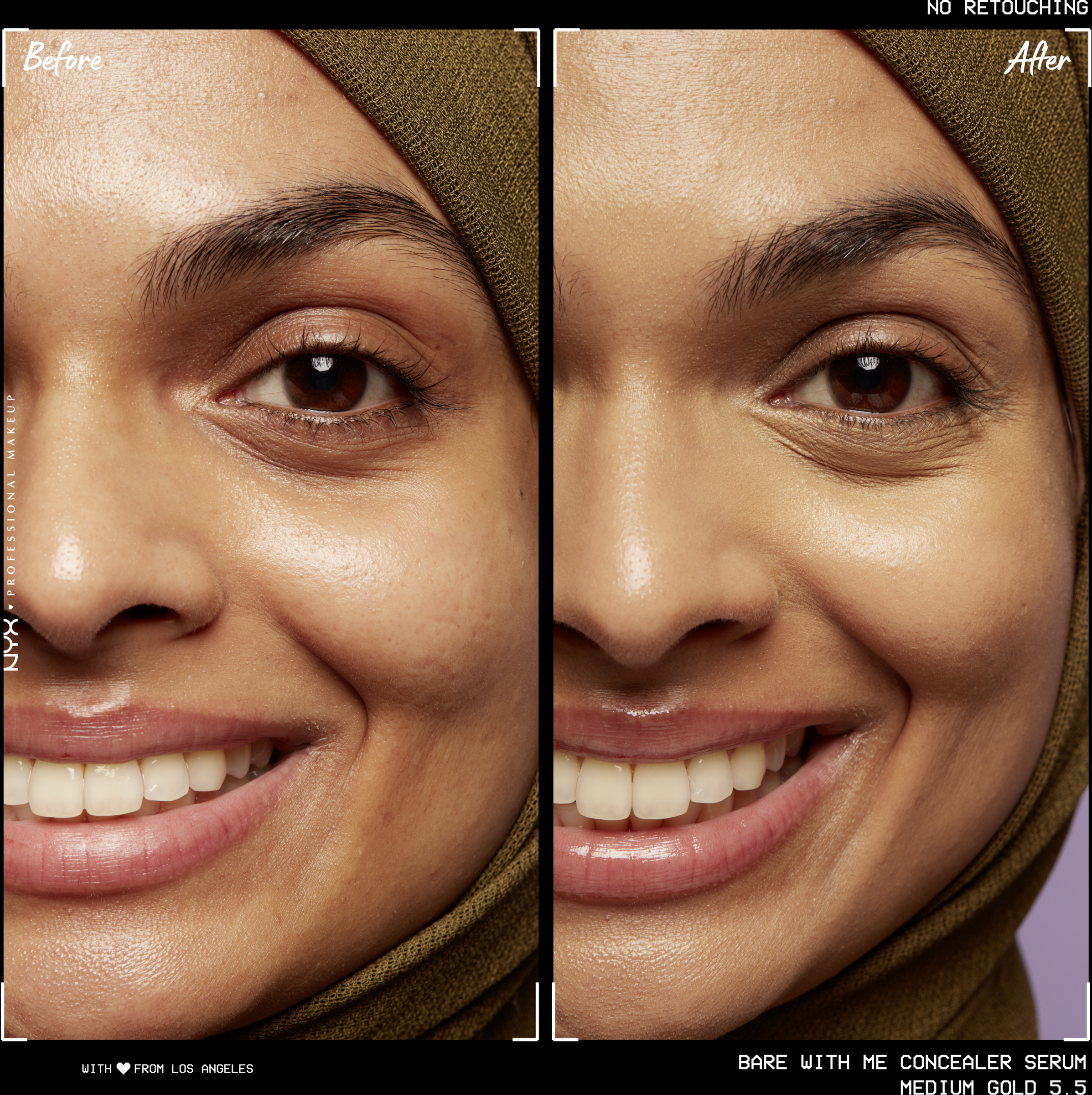 Das NYX Professional Makeup Bare With Me Concealer Serum kombiniert die Wirksamkeit eines Serums mit den Vorteilen eines Concealers. Bereits nach kurzer Zeit erlangt die Haut einen Zustand der Erholung. Mit dem Skin Recovery Serum werden dank kraftvoller Medium-Deckkraft Unebenmäßigkeiten auf der Haut kaschiert, rote oder entzündete Hautstellen werden gemildert. Die atmungsaktive Formel passt sich jedem Hautton an und lässt sich besonders leicht verblenden – für ein natürliches Finish. Das enthaltene Extrakt des Tremella-Pilzes wirkt entzündungshemmend und hydratisiert die Haut, ohne die Poren zu verstopfen. Grüner Tee und Cica sorgen dafür, dass irritierte Haut besänftigt und beruhigt wird.