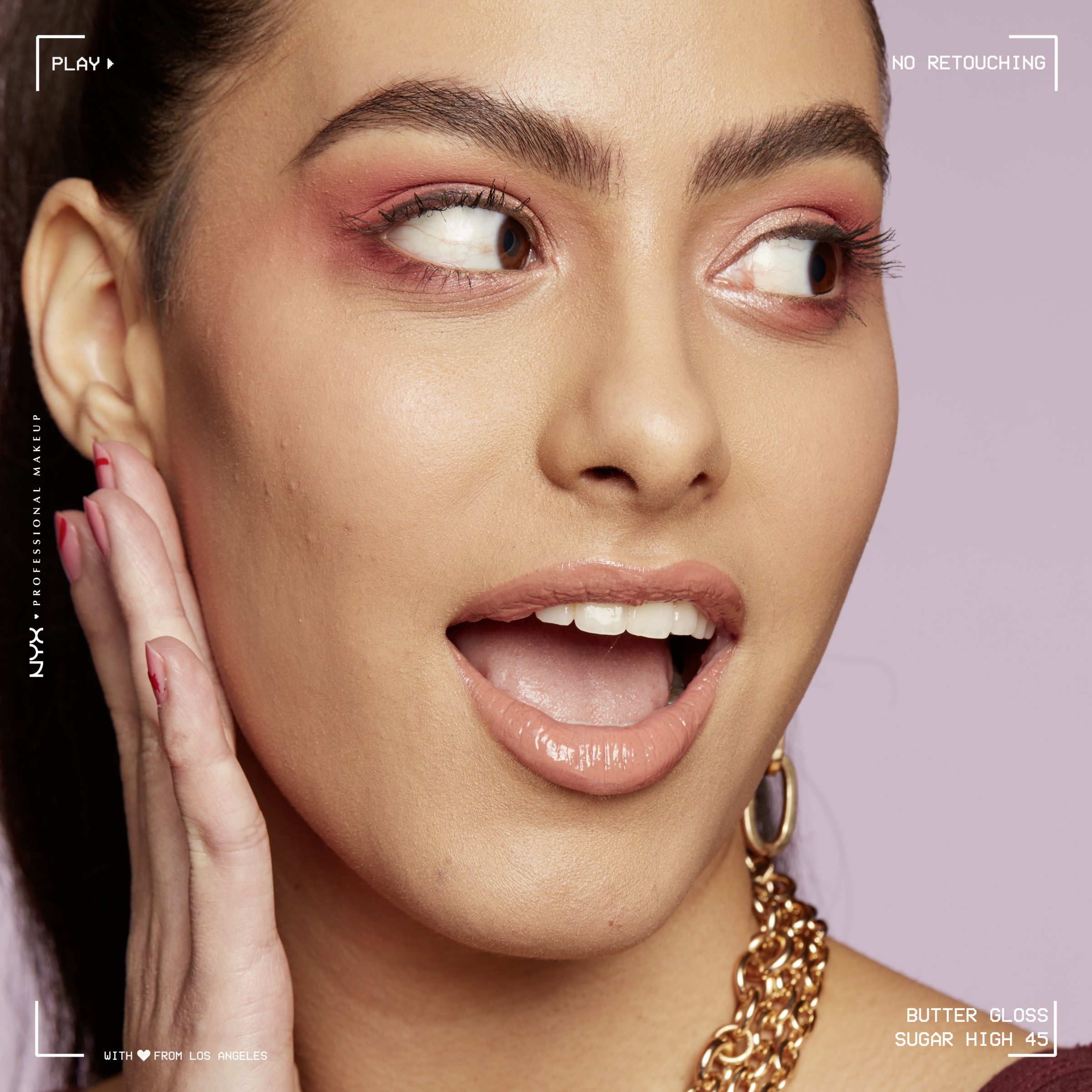 Der Butter Lip Gloss Sugar High von NYX Professional Makeup kann sowohl alleine als auch in Kombination mit einem Lippenstift für ein natürlich glänzendes und zartes bis mittleres Finish angewendet werden.Als erstes den Lip Gloss mithilfe des Applikators auf die Lippen alleine oder über den vorher aufgetragenen Lippenstift geben und dort gleichmäßig verteilen. Der Gloss verschmilzt direkt mit den Lippen, ohne zu kleben.Für ein noch glänzenderes Ergebnis kann der Butter Lip Gloss auch in mehreren Schichten aufgetragen werden.Die Applikatorspitze hilft dabei, auch bei markanten Lippenkonturen alle Ecken ausfüllen zu können.
