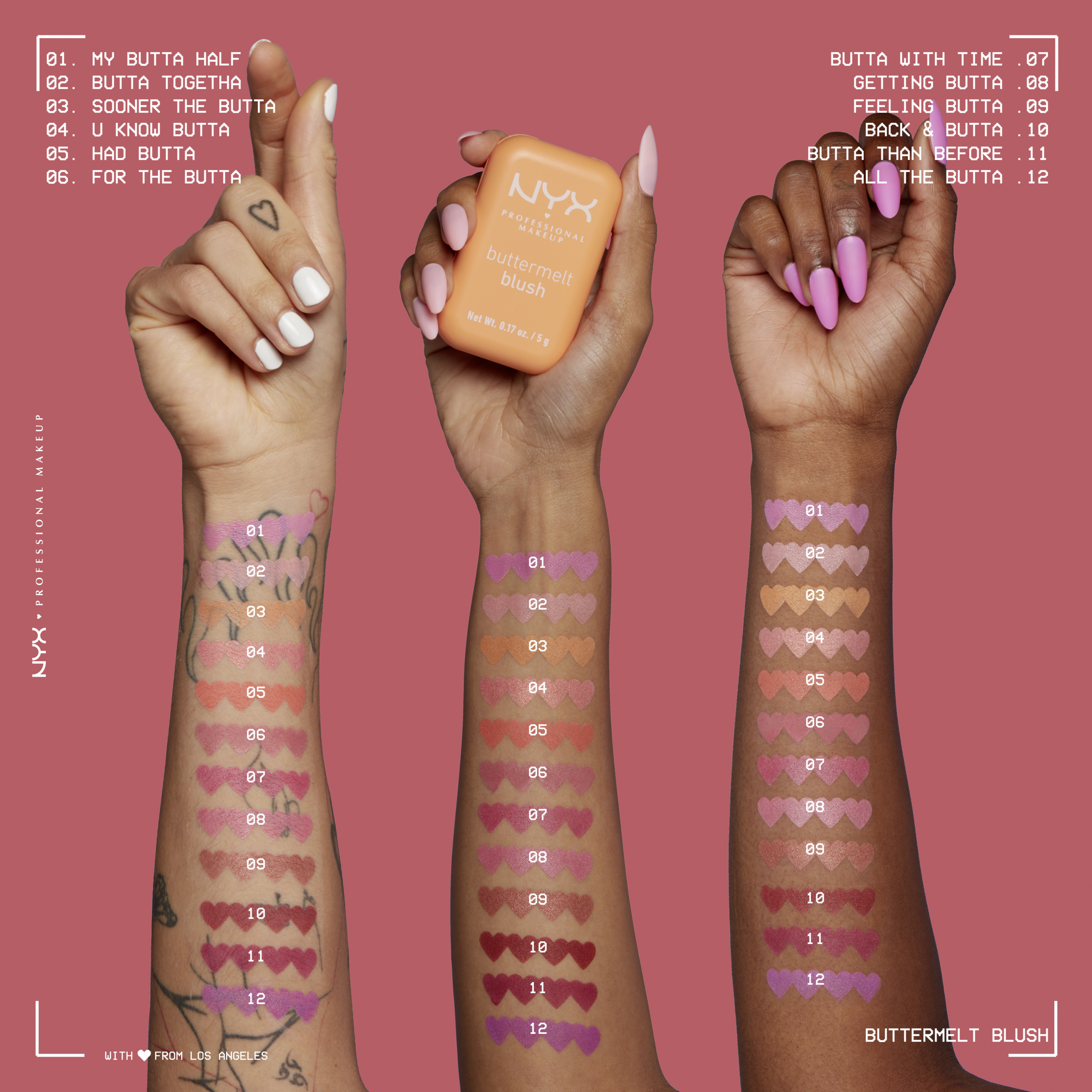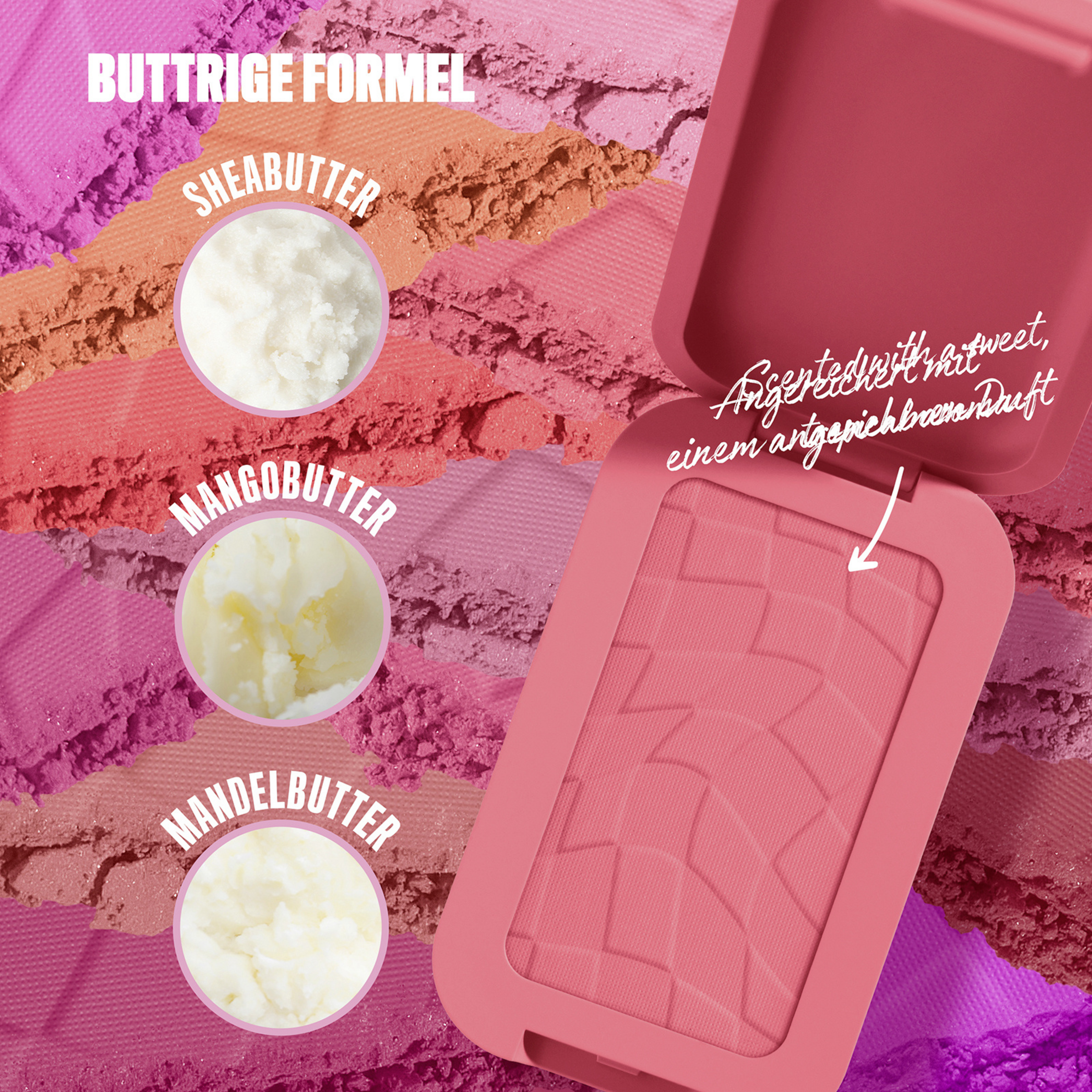 Der Buttermelt Blush von NYX Professional Make up ,,U Know Butta'' setzt das Gesicht mit besonderer Frische in Szene. Dank der cremigen Textur verschmilzt der Blush wie ein Puder mit der Haut und lässt sich gleichzeitig wie Butter verblenden. Die angenehm leicht zu tragende Formulierung ist individuell für die gewünschte Farbintensität aufbaubar. Egal, ob weniger Blush für den Tag oder etwas mehr Farbe für den Abend – der Buttermelt Blush macht es möglich. Darüber hinaus zeichnet sich der Buttermelt Blush durch eine pflegende Formel aus, die sowohl aus Shea Butter als auch Mandelbutter besteht und dank Mangobutter zusätzlich einen betörenden Duft hat.