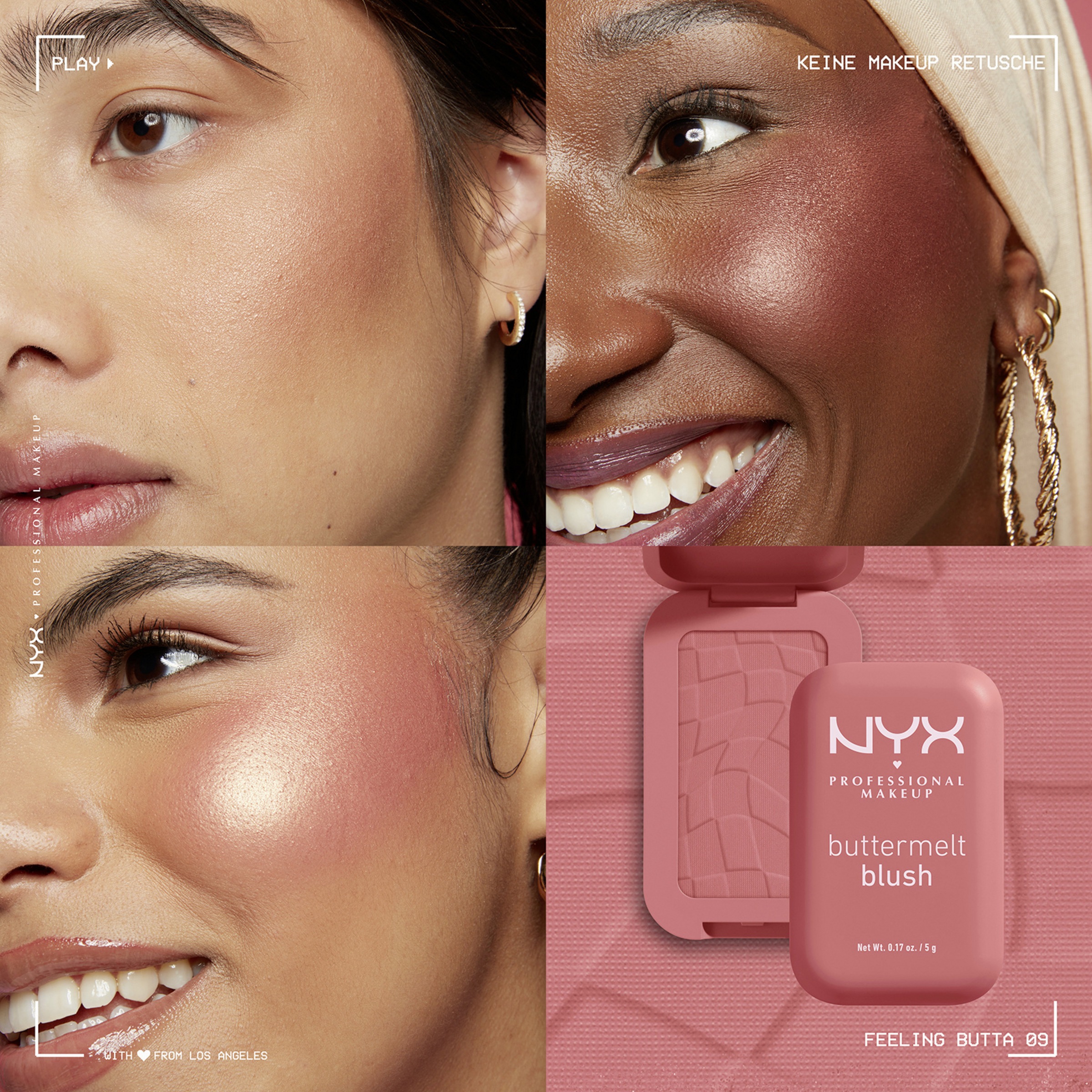 Der Buttermelt Blush von NYX Professional Make up My Butta Half setzt das Gesicht mit besonderer Frische in Szene. Dank der cremigen Textur verschmilzt der Blush wie ein Puder mit der Haut und lässt sich gleichzeitig wie Butter verblenden. Die angenehm leicht zu tragende Formulierung ist individuell für die gewünschte Farbintensität aufbaubar. Egal, ob weniger Blush für den Tag oder etwas mehr Farbe für den Abend – der Buttermelt Blush macht es möglich. Darüber hinaus zeichnet sich der Buttermelt Blush durch eine pflegende Formel aus, die sowohl aus Shea Butter als auch Mandelbutter besteht und dank Mangobutter zusätzlich einen betörenden Duft hat.