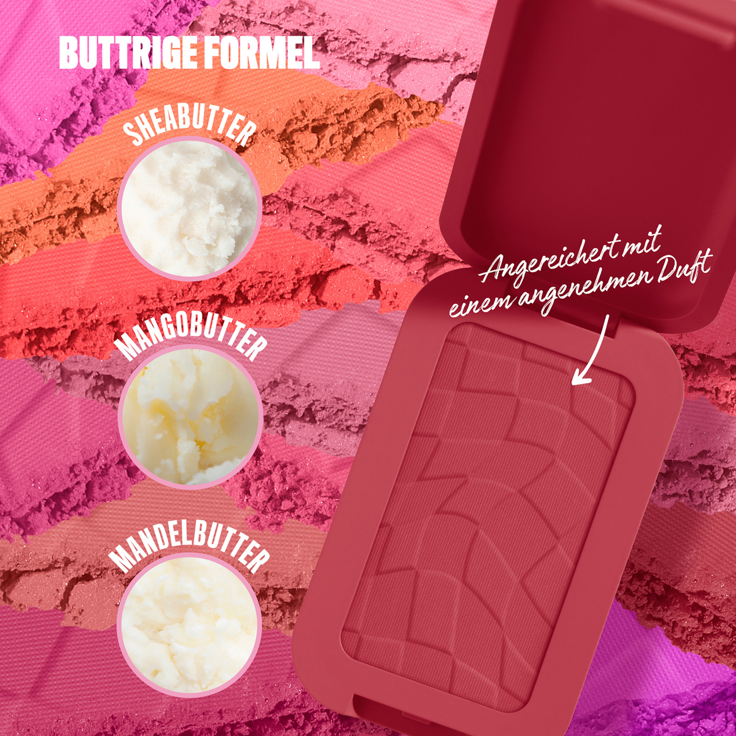 - die cremige Formel des Buttermelt Blush mit Shea, Mango- und Mandelbutter pflegt die Haut