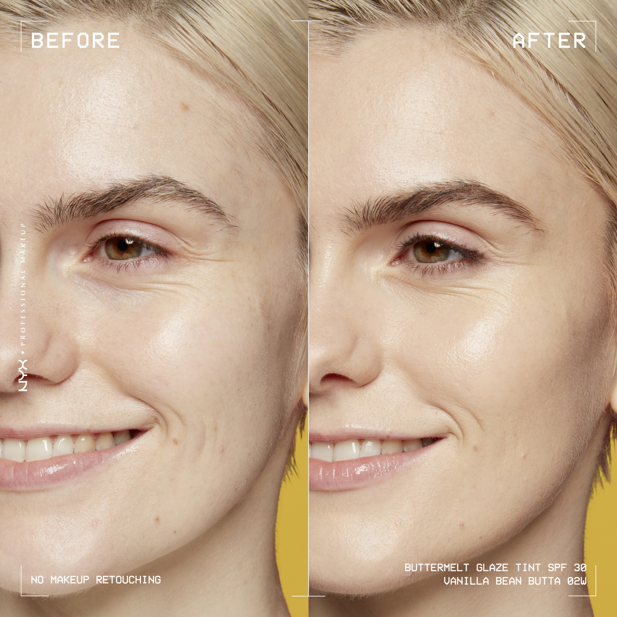 Pflegende Foundation mit der Extra-Portion Sonnenschutz! Die NYX Professional Makeup Buttermelt Glaze Foundation 02 Vanilla Bean Butta bietet alle Vorteile einer Hautpflege, denn nährende Inhaltsstoffe wie Sheabutter, Mangobutter und Niacinamide versorgen die Haut mit ausreichend Feuchtigkeit für den Tag – besonders empfehlenswert für normale bis trockene Hauttypen. Der Sonnenschutz mit LSF 30 schützt zudem vor schädlichen UVA- und UVB-Strahlen, sodass die Foundation den optimalen Start in den Tag garantiert – ohne weiße Rückstände zu hinterlassen und ohne öliges Finish. Der aufbaubare Shade lässt sich über verschiedene Hauttöne erstrecken, sodass jeder Hautton sein optimales Match findet!