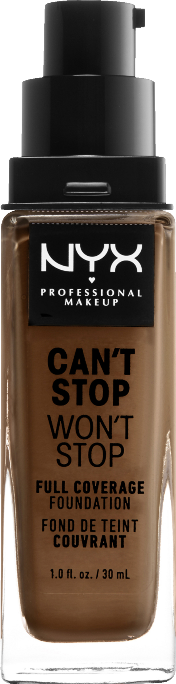 Matte Flüssigfoundation für Gesicht und Dekolleté, Für volle und angenehme Abdeckung - Ideal für alle Hauttöne mit einem warmen, kalten oder neutralen Unterton, Geeignet für normale, fettige und Mischhaut - Einfach verwendbares Pump Spray, Cremige Textur mit leichtem Finish, Verblenden Sie das Makeup durch Tupfbewegungen für eine gleichmäßige Abdeckung, Tragen Sie für höhere Deckkraft eine weitere Schicht auf - Nicht-komedogene Zusammensetzung mit Inhaltsstoffen zur Vermeidung von verstopften Poren, Vegane Formel, Wasserfest für langanhaltende Deckkraft - Lieferumfang: 1x NYX Professional Makeup Can't Stop Won't Stop Full Coverage Foundation, Vanilla, 30 ml