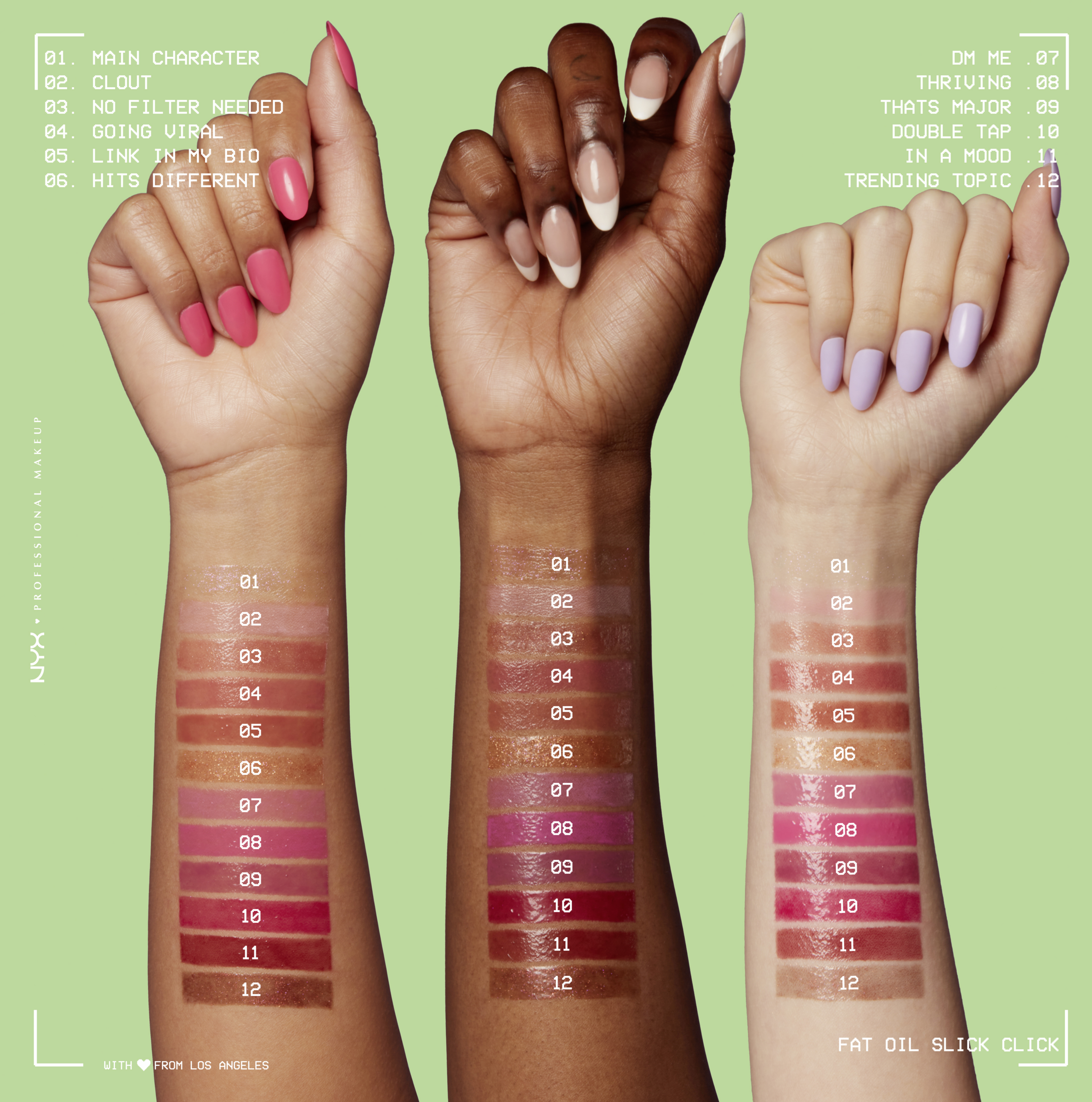 Den Fat Oil Slick Click gleichmäßig auf die Lippen auftragen. Der Lippenstift kann in mehreren Schichten aufgetragen werden, um ein intensiveres Farbergebnis zu erzielen. Für ein glossy Finish den Fat Oil Slick Click einfach mit einem Lipgloss kombinieren und vor dem Auftragen einen Lipliner verwenden.