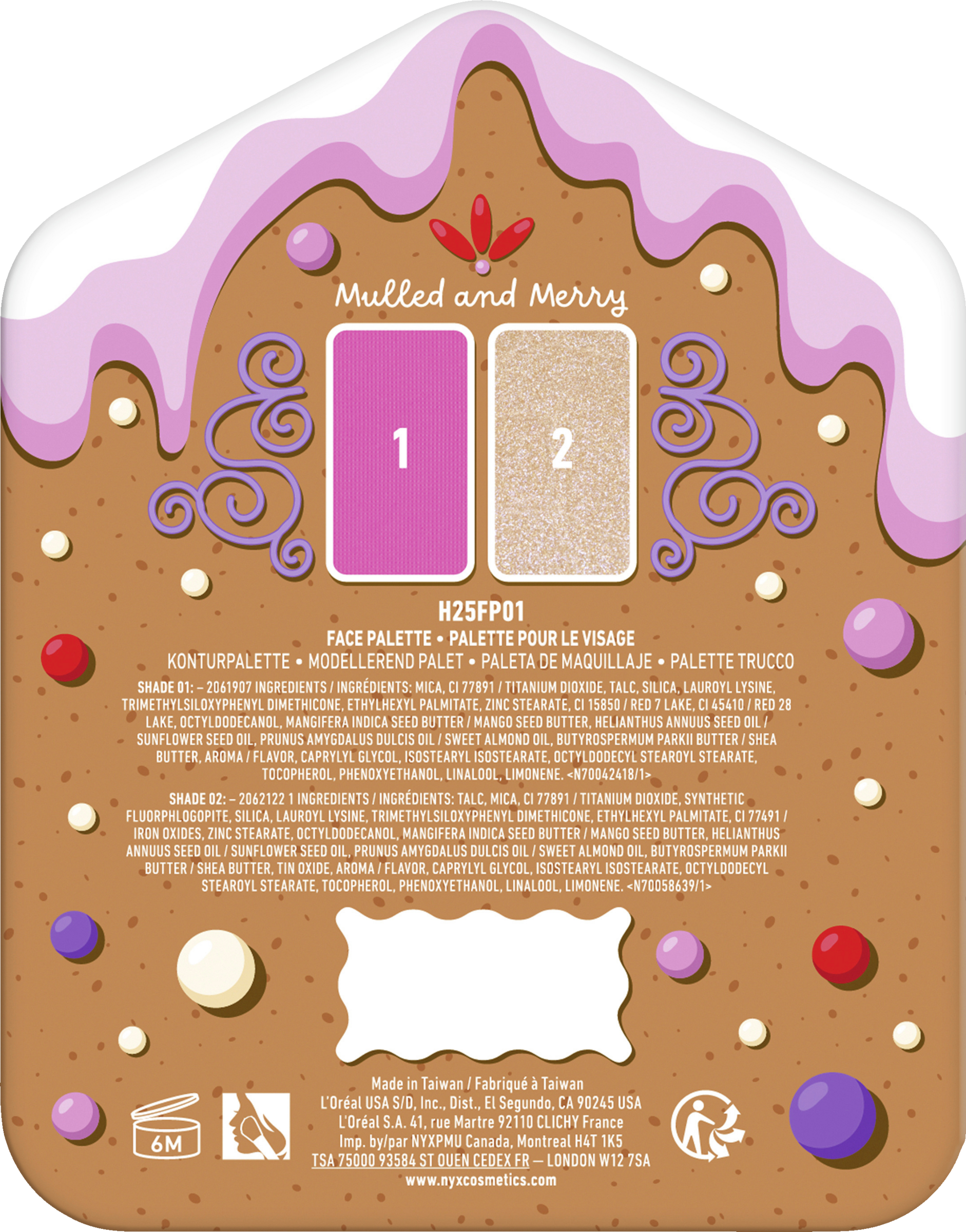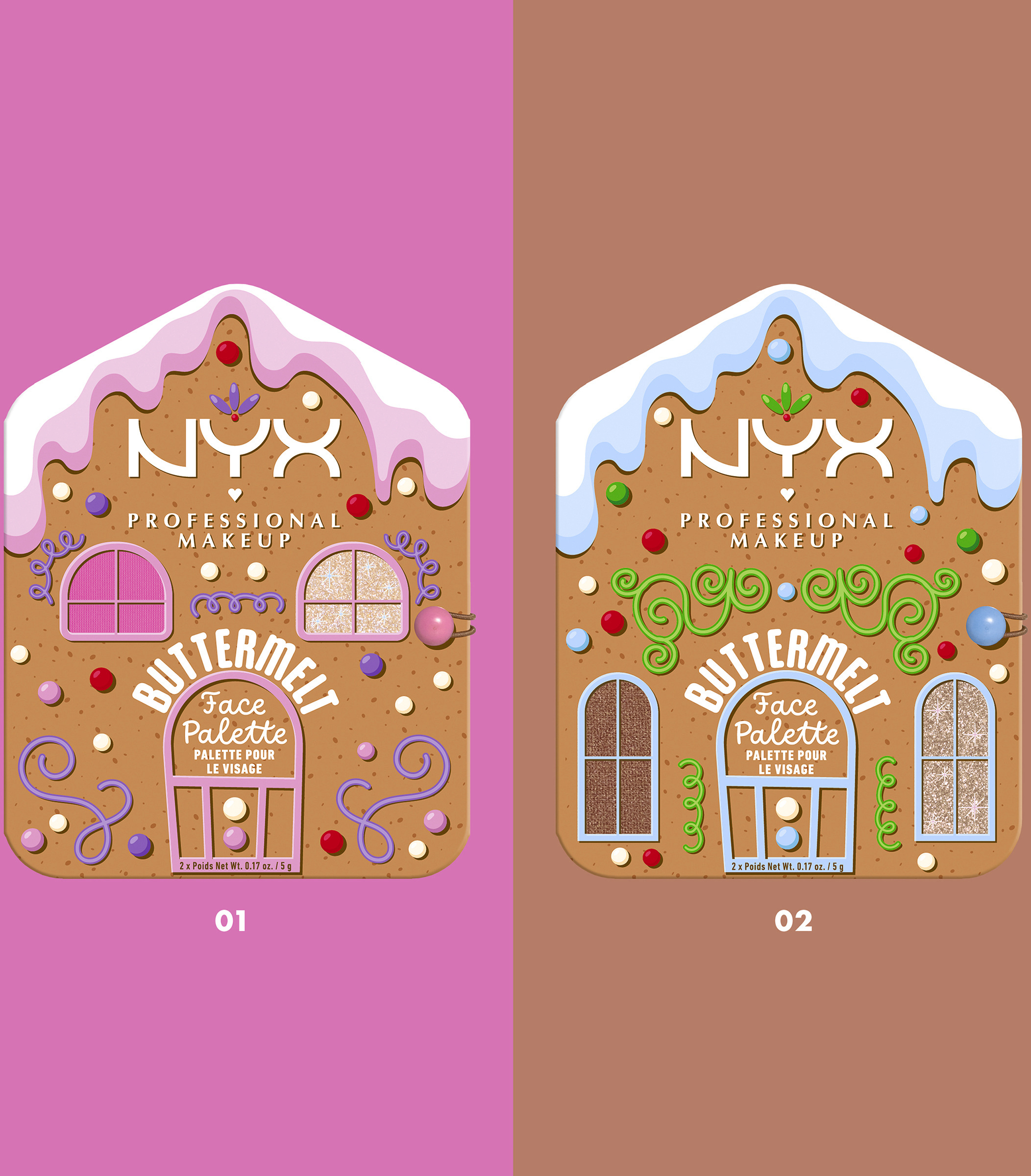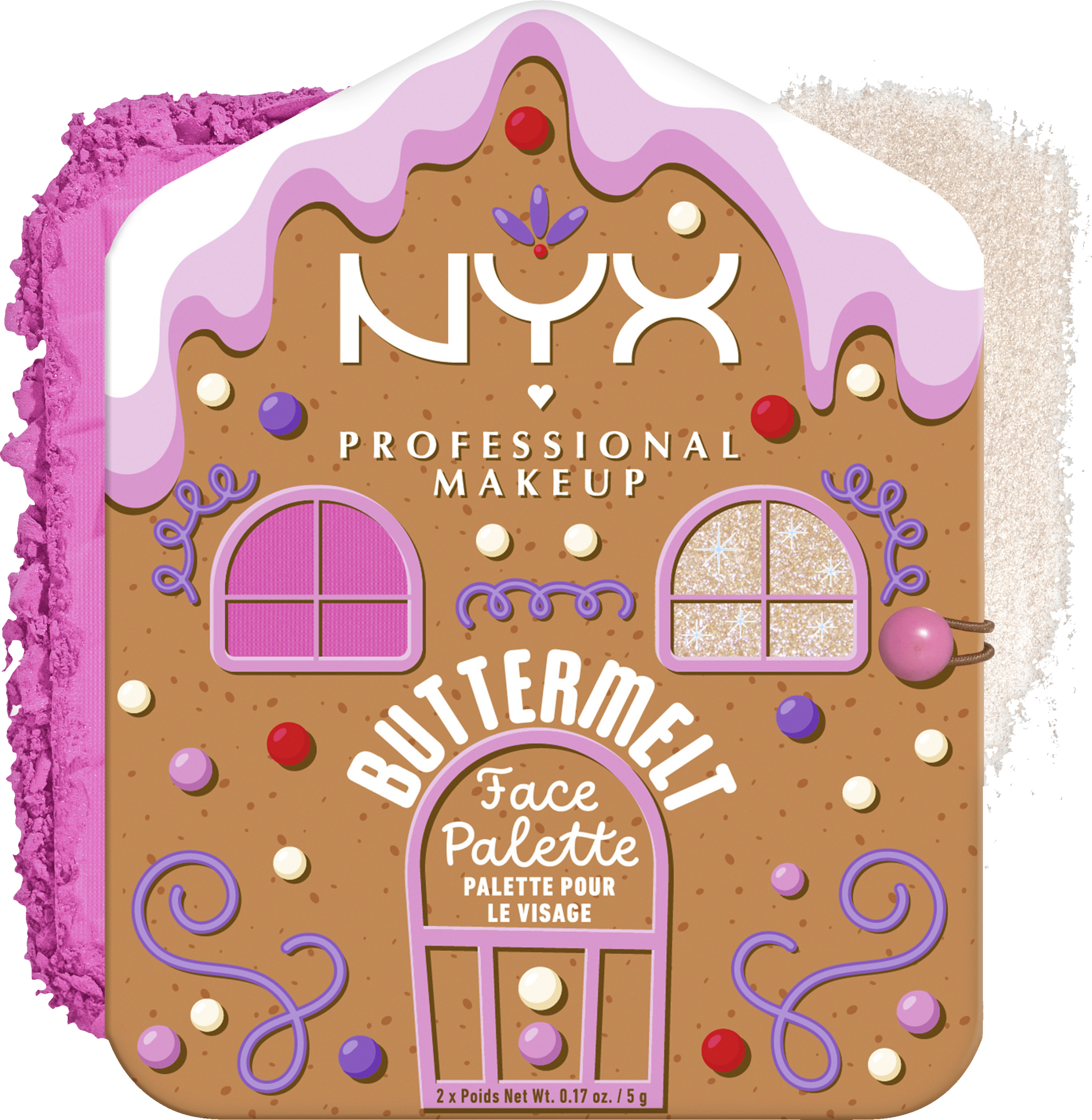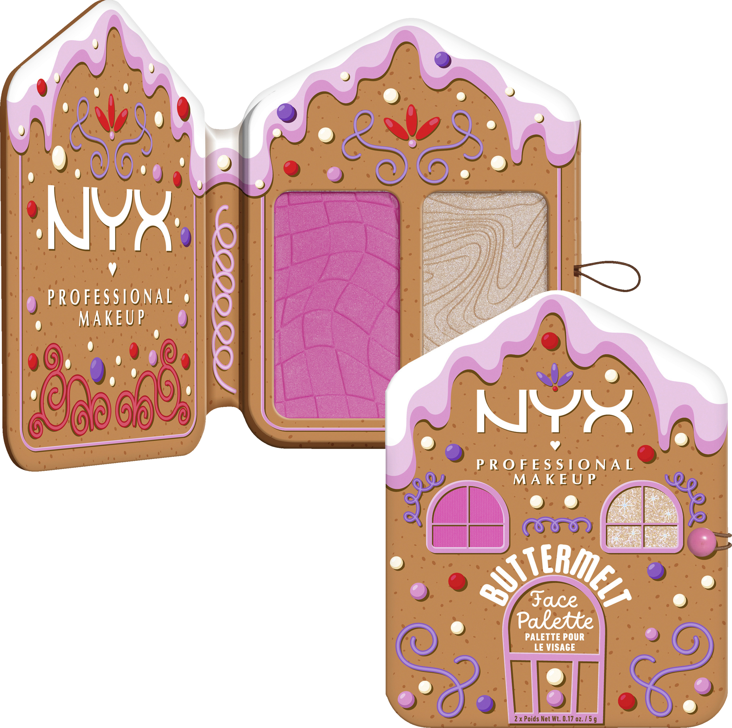 Die Holiday 2025 Buttermelt Face Palette Light/Medium von NYX Professional Makeup zaubert einen perfekten Feiertags-Glow. Dafür sorgt das Blush in Rosa sowie ein heller Highlighter, die einen natürlichen und gesund aussehenden Look erwecken lassen. Und das Beste: Passend zur Verpackung in niedlicher Lebkuchenhaus-Form punktet das Duo auch mit einem zarten Duft nach Lebkuchen. Die cremig-buttrige Textur lässt sich ausgesprochen einfach, ähnlich einem Puder, verblenden. Flecken? Fehlanzeige. Dafür sorgt die pflegende Formel aus Sheabutter, Mandelbutter und Mangobutter für ein angenehmes Tragegefühl während der Weihnachtszeit.