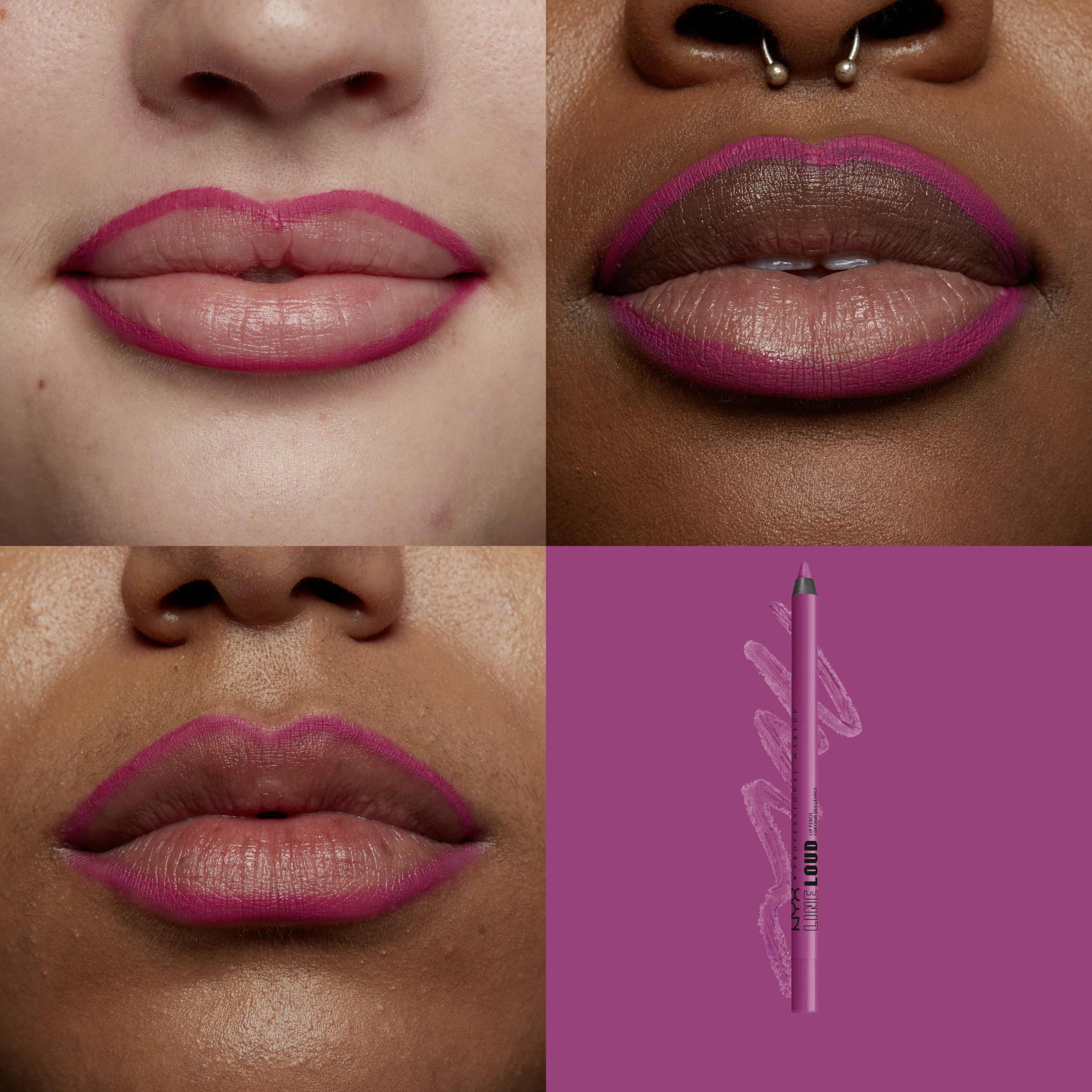 Der Line Loud Longwear Lip Pencil von NYX Professional Makeup kann sowohl allein als auch in Kombination mit einem Lippenstift verwendet werden. Dafür als Erstes mithilfe der präzisen Spitze des Lipliners die Konturen der Lippen nachzeichnen. Im Anschluss bei Bedarf die Textur nach innen verblenden. Nun den gewünschten Lippenstift auftragen. Um ein glossiges Finish zu erzielen, kann nach der Verwendung des Lippenkonturenstiftes sowie des Lippenstiftes auch ein Lipgloss verwendet werden. Für den 90’s Look eine dunklere Lipliner-Farbe als die des Lippenstiftes wählen oder den Lipliner, ohne zu verblenden, solo tragen.