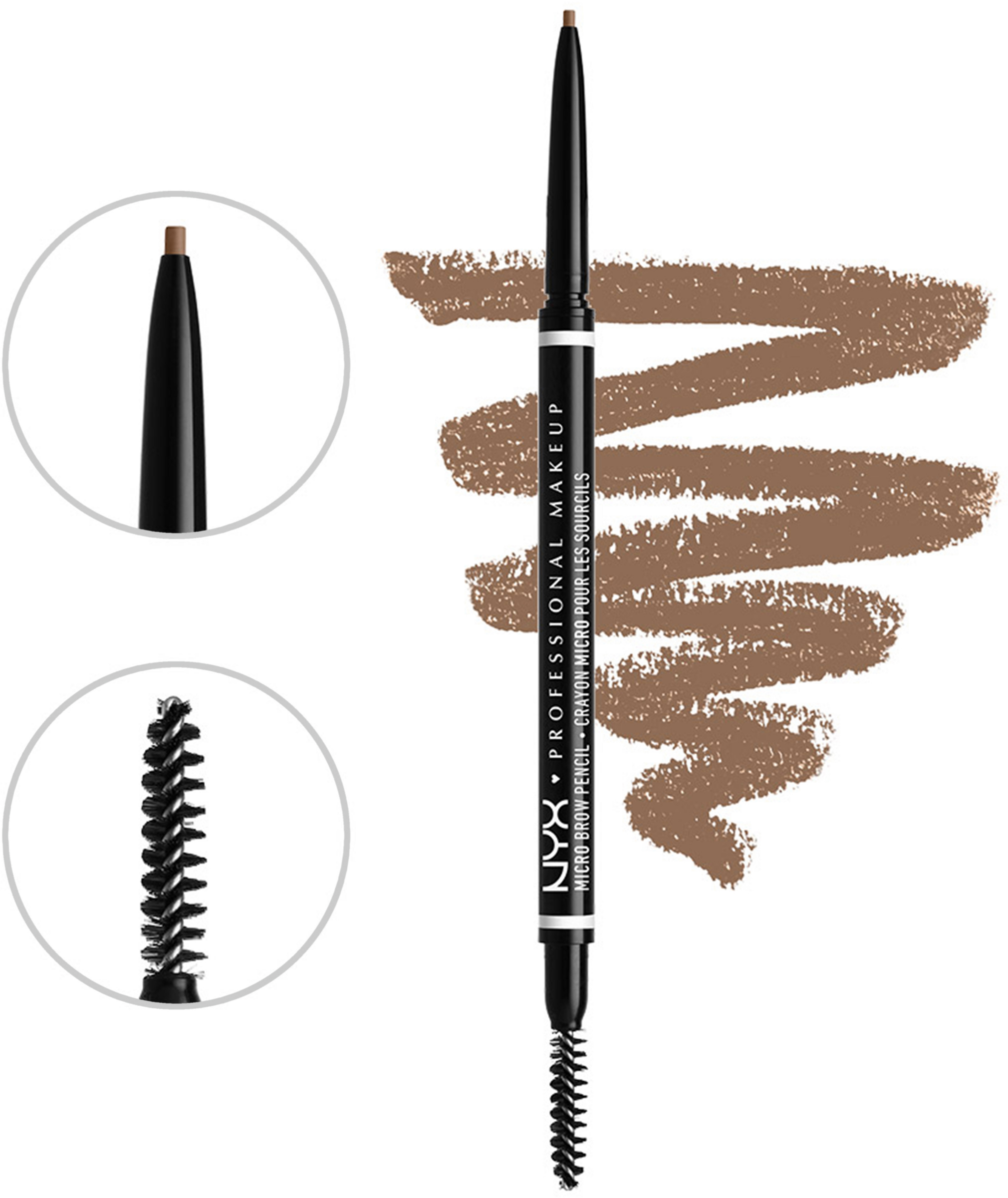Doppelseitiger, feiner Augenbrauenpinsel zum Highlighten, Formen und Definieren Ihrer Augenbrauen - Präziser Augenbrauenstift für schmale Linien und ein besonders natürliches Ergebnis - Feines Bürstchen zum Verblenden wie die Profis - Langanhaltend und natürliches Finish dank weichem Taupe-Unterton - Vegane Formel - Lieferumfang: 1x NYX Professional Makeup Micro Brow Pencil, Taupe, 0,5 Gramm