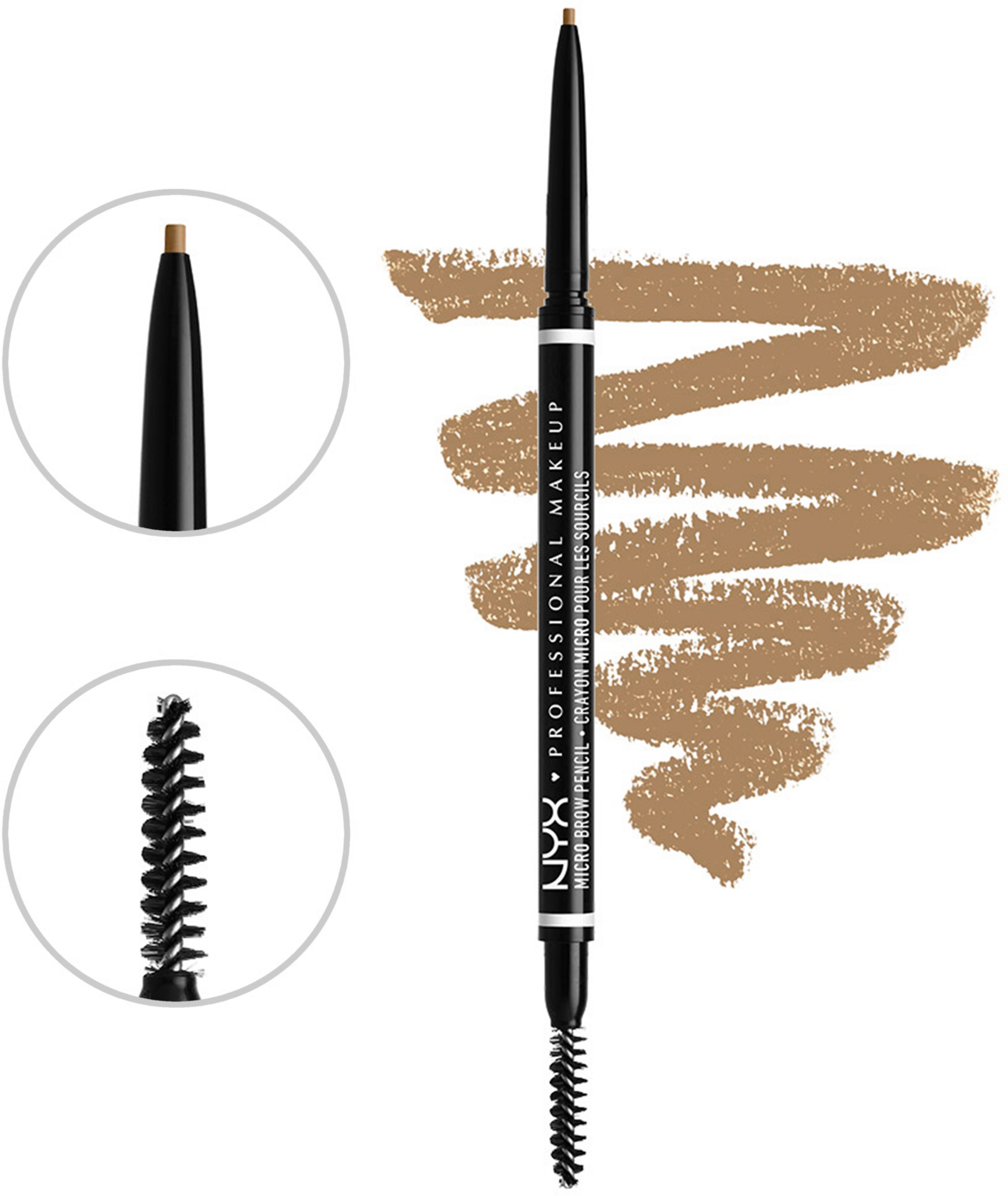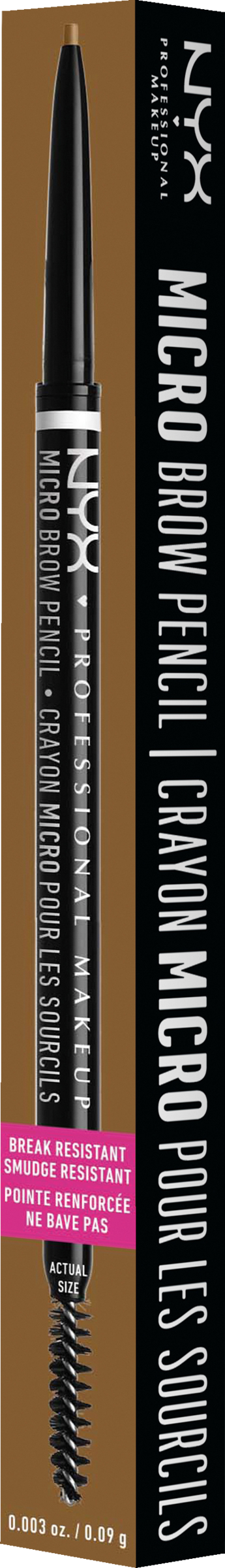 Doppelseitiger, feiner Augenbrauenpinsel zum Highlighten, Formen und Definieren Ihrer Augenbrauen - Präziser Augenbrauenstift für schmale Linien und ein besonders natürliches Ergebnis - Feines Bürstchen zum Verblenden wie die Profis - Langanhaltend und natürliches Finish dank weichem Blonde-Unterton - Vegane Formel - Lieferumfang: 1x NYX Professional Makeup Micro Brow Pencil, Blonde, 0,5 Gramm
