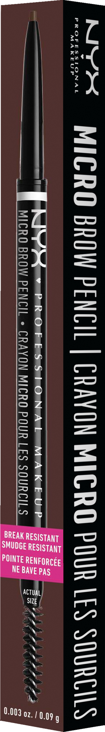 Doppelseitiger, feiner Augenbrauenpinsel zum Highlighten, Formen und Definieren Ihrer Augenbrauen - Präziser Augenbrauenstift für schmale Linien und ein besonders natürliches Ergebnis - Feines Bürstchen zum Verblenden wie die Profis - Langanhaltend und natürliches Finish dank weichem Brunette-Unterton - Vegane Formel - Lieferumfang: 1x NYX Professional Makeup Micro Brow Pencil, Brunette, 0,5 Gramm