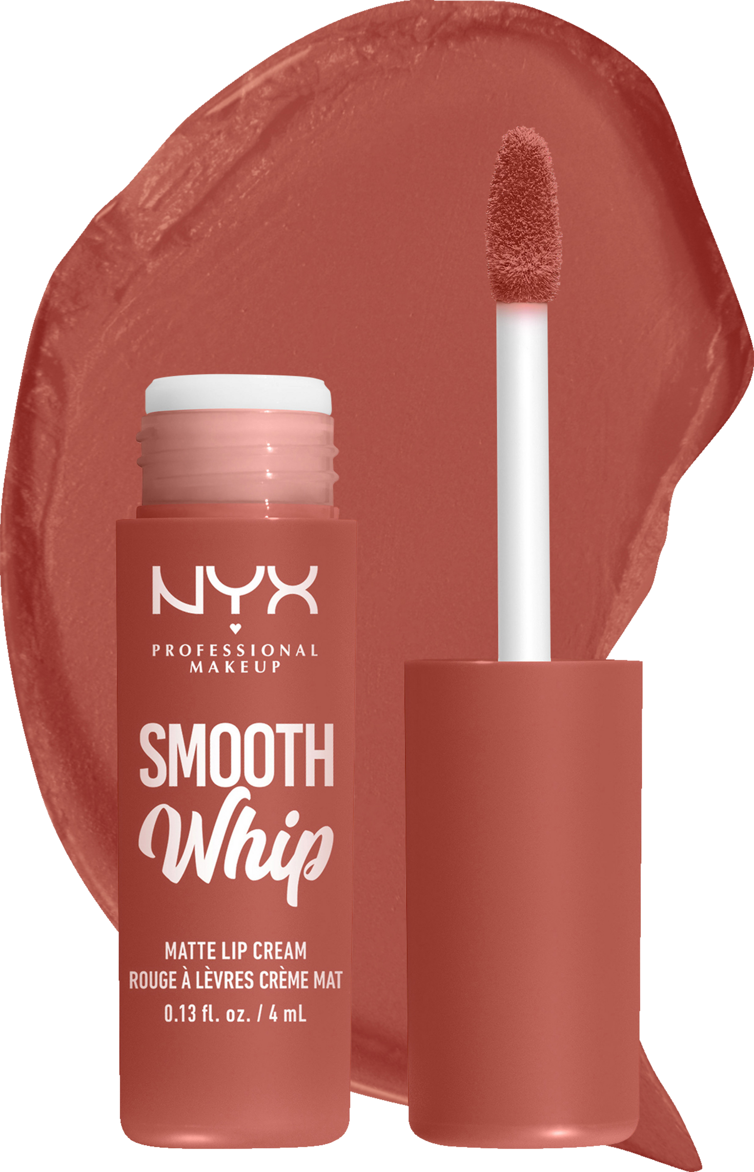 Die Smooth Whip Matte Lip Cream von NYX Professional Makeup ist ein pflegender und intensiv deckender Lippenstift für aufregende Lippen-Looks mit langem Halt. Dabei zeichnet sich die Lip Cream durch eine feuchtigkeitsspendende und geschmeidige Textur aus, die sowohl Sheabutter und Kakaobutter als auch nährende Öle enthält. Dadurch werden die Lippen vor dem Austrocknen geschützt und es entsteht ein geschmeidiges Gefühl. Dank der hohen Farbintensität werden die Lippen voll ausgefüllt, ohne Linien zu hinterlassen oder zu bröckeln. Ein einfaches und präzises Auftragen ist dank des soften und flexiblen Applikators möglich.