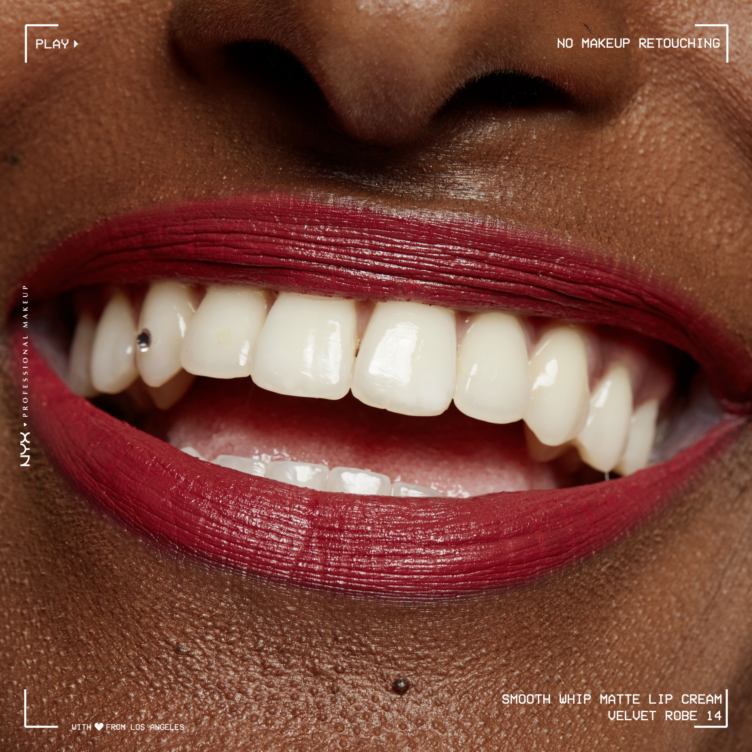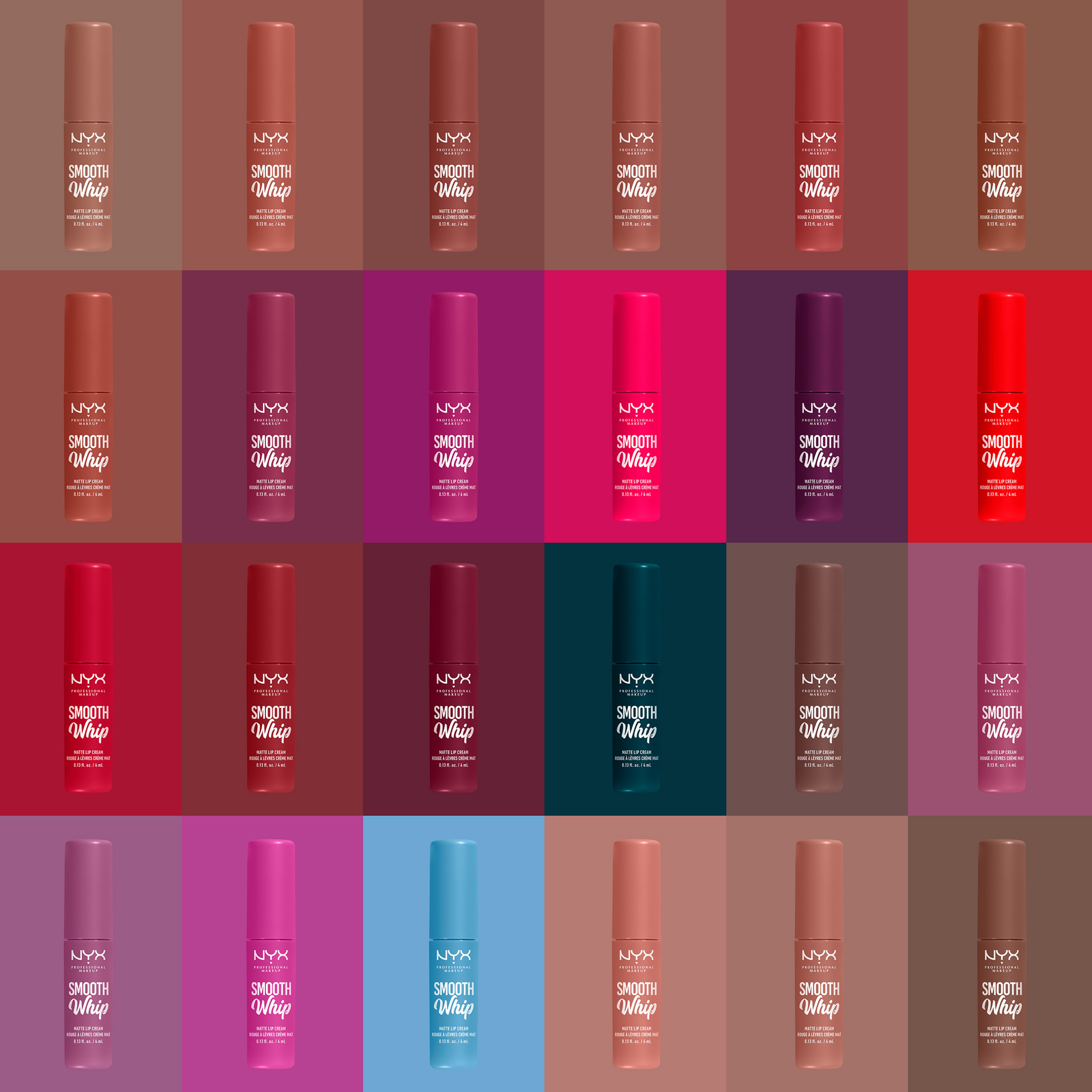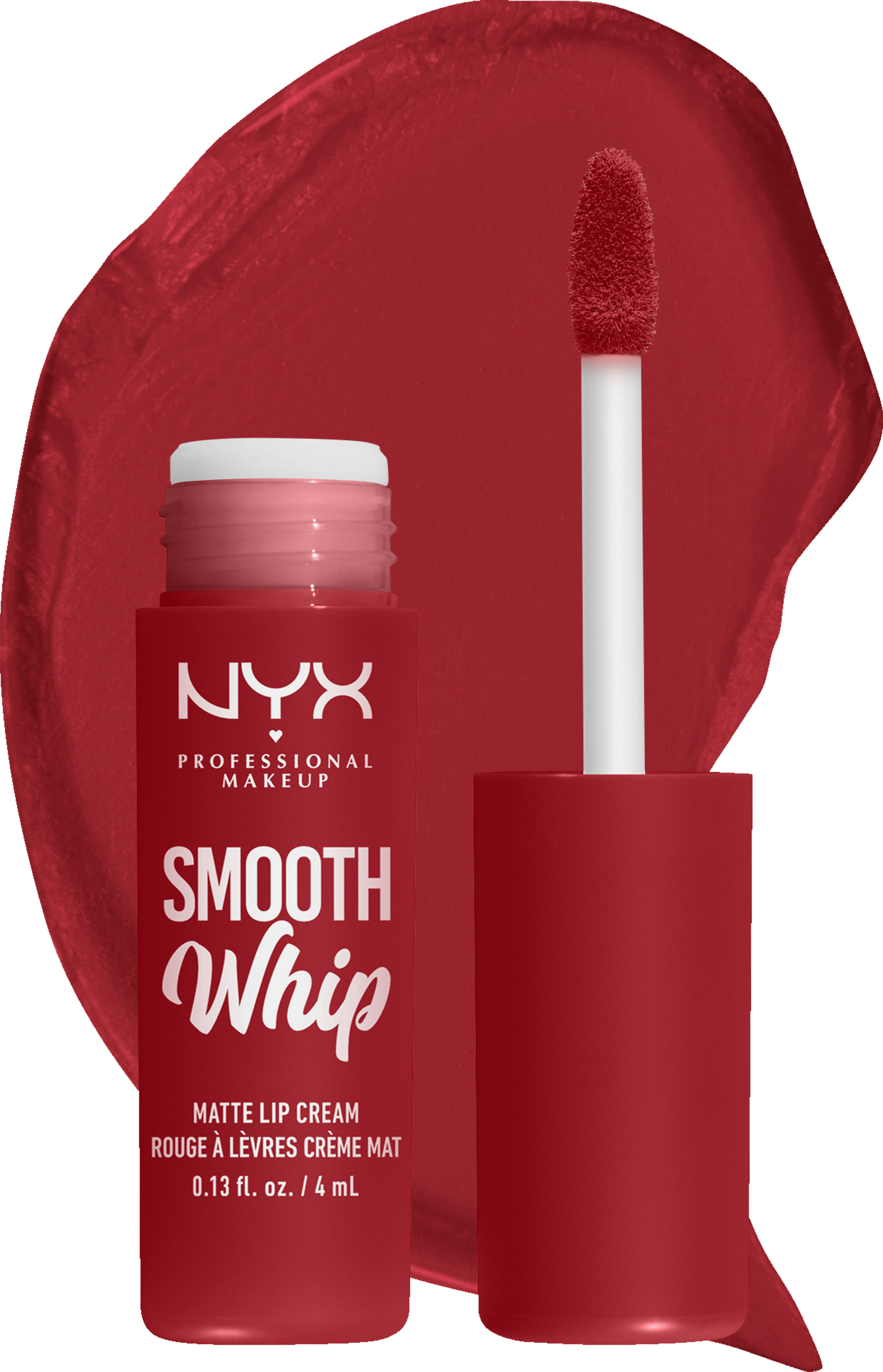 Die Smooth Whip Matte Lip Cream von NYX Professional Makeup ist ein pflegender und intensiv deckender Lippenstift für aufregende Lippen-Looks mit langem Halt. Dabei zeichnet sich die Lip Cream durch eine feuchtigkeitsspendende und geschmeidige Textur aus, die sowohl Sheabutter und Kakaobutter als auch nährende Öle enthält. Dadurch werden die Lippen vor dem Austrocknen geschützt und es entsteht ein geschmeidiges Gefühl. Dank der hohen Farbintensität werden die Lippen voll ausgefüllt, ohne Linien zu hinterlassen oder zu bröckeln. Ein einfaches und präzises Auftragen ist dank des soften und flexiblen Applikators möglich.