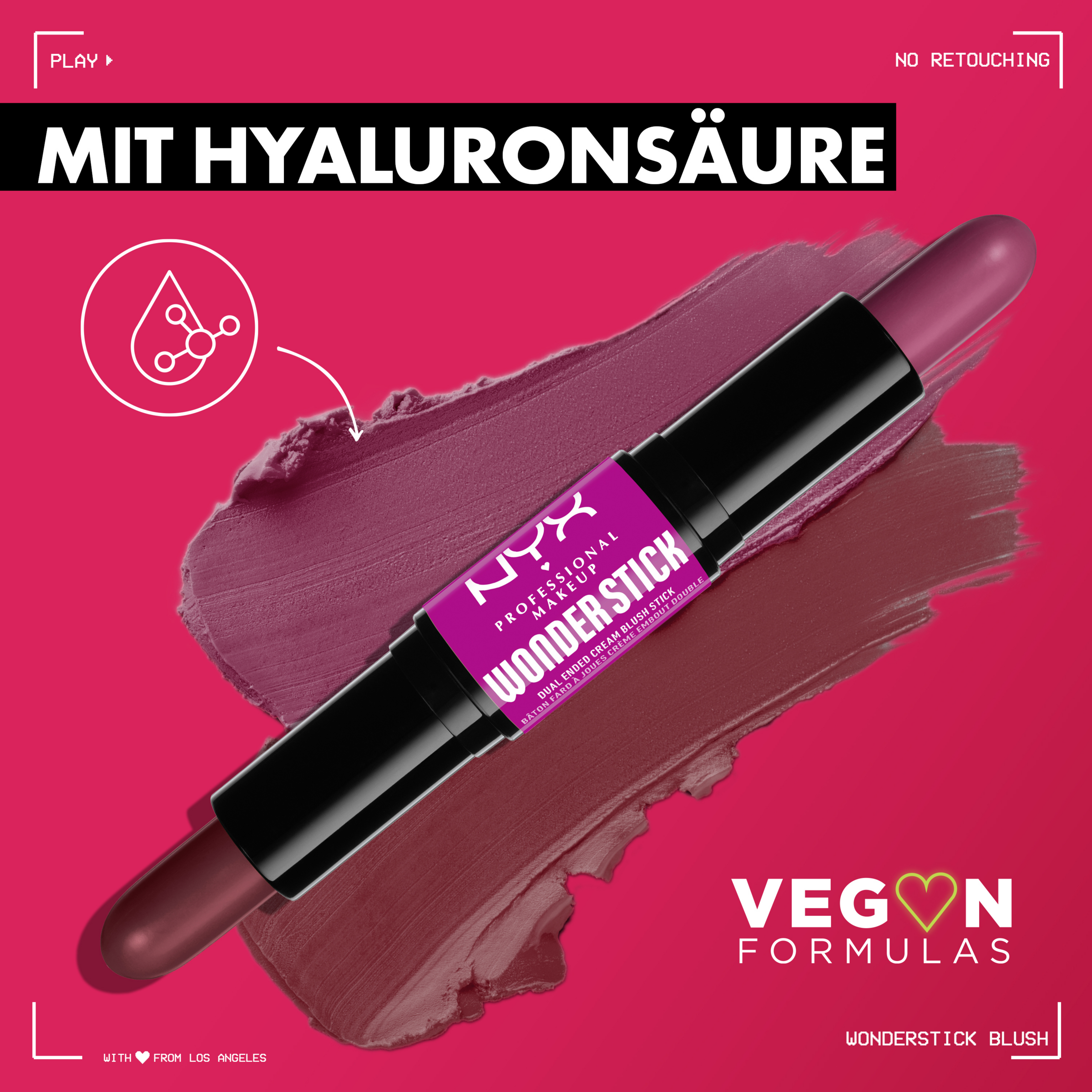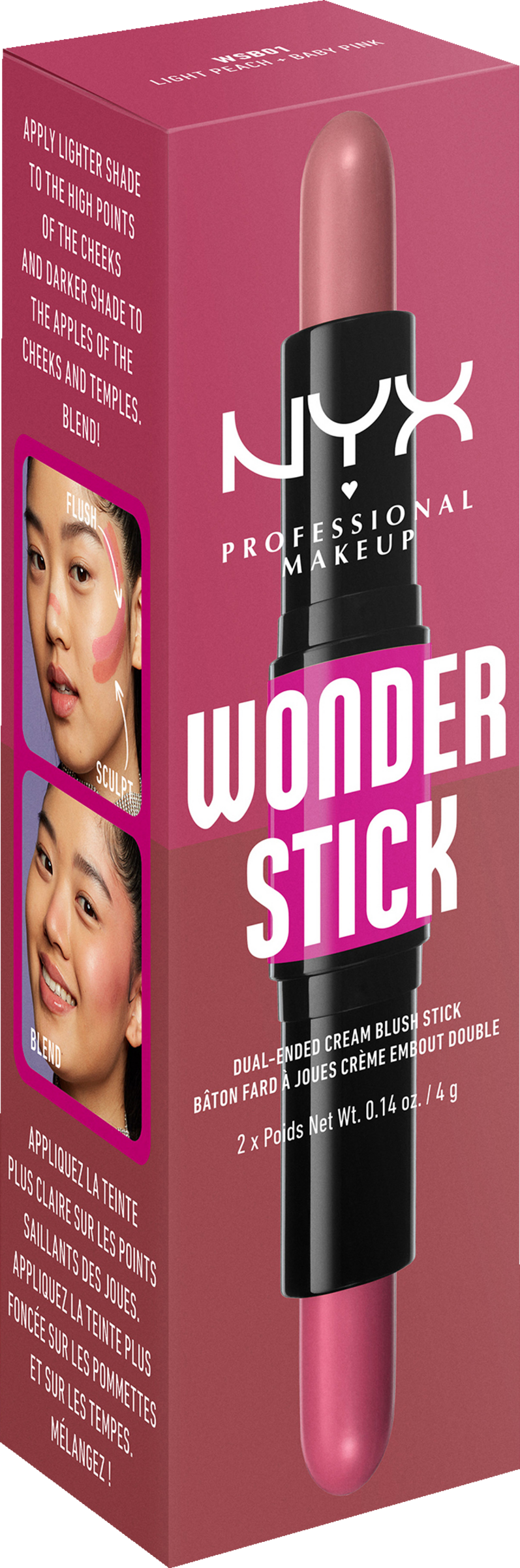 Der Wonder Stick Blush von NYX Professional Makeup zeichnet sich durch eine cremige Textur sowie durch zwei unterschiedlich nuancierte Seiten aus, die nicht nur einen Lifting-Effekt erzeugen, sondern auch aufhellen. Die feuchtigkeitsspendende Formel mit Hyaluronsäure verschmilzt mit der Haut und lässt sich spielend leicht auftragen und verblenden. Dabei passen die beiden Seiten farblich zu jedem Hautton und verleihen ihm einen schimmernden Hauch von Farbe. Zudem kann der Blush-Stick sowohl alleine als auch in Kombination mit der Sweet Cheeks Powder Blush verwendet werden, um entweder zusätzliche schimmernde Highlights oder ein mattes Finish zu setzen.