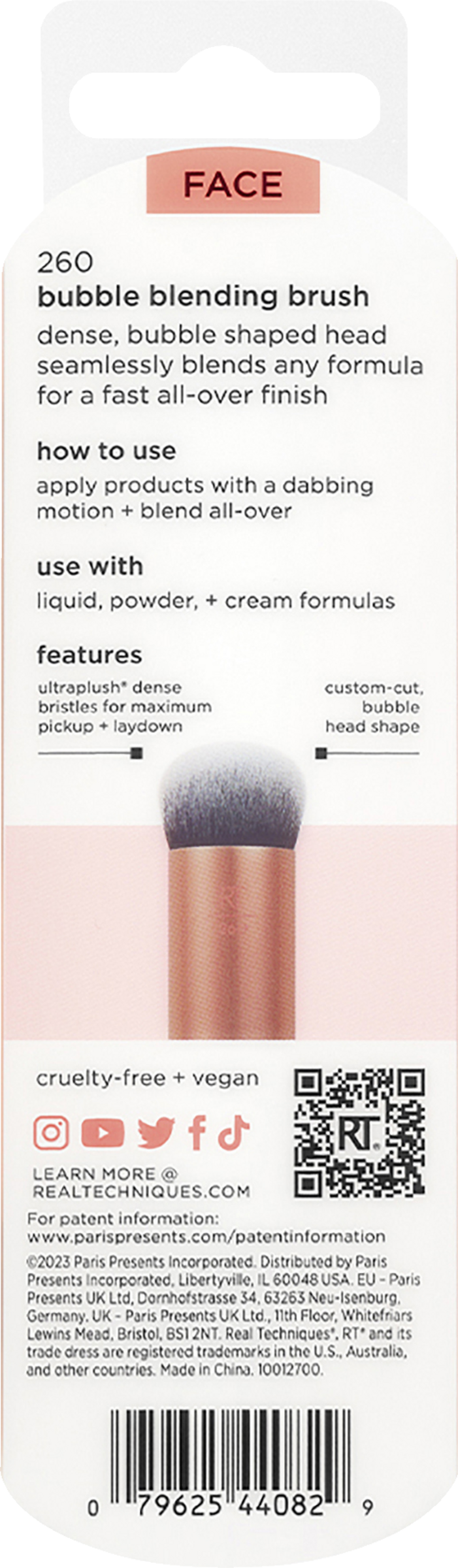 Mit dem Bubble Blending Make-up Brush lässt sich jede Textur für ein schnelles All-Over-Finish nahtlos verblenden. Er ist so geformt, dass er problemlos verblenden kann. Dieser vielseitige Make-up-Pinsel eignet sich zum Auftragen, Abdecken und Fixieren von flüssigem, cremigem oder pudrigem Make-up. Maximale Aufnahme, präzises Auftragen und gezielte Gestaltung - dieses dreifache Design wird deine tägliche Routine aufwerten. Er verfügt über einen dichten, kugelförmigen Kopf, der jede Formel nahtlos verblendet und für ein schnelles All-Over Finish sorgt.Für jeden Schritt deiner Make-up-Routine und alle Texturen verwenden, UltraPlush™ Borsten, vegan und Cruelty Free.