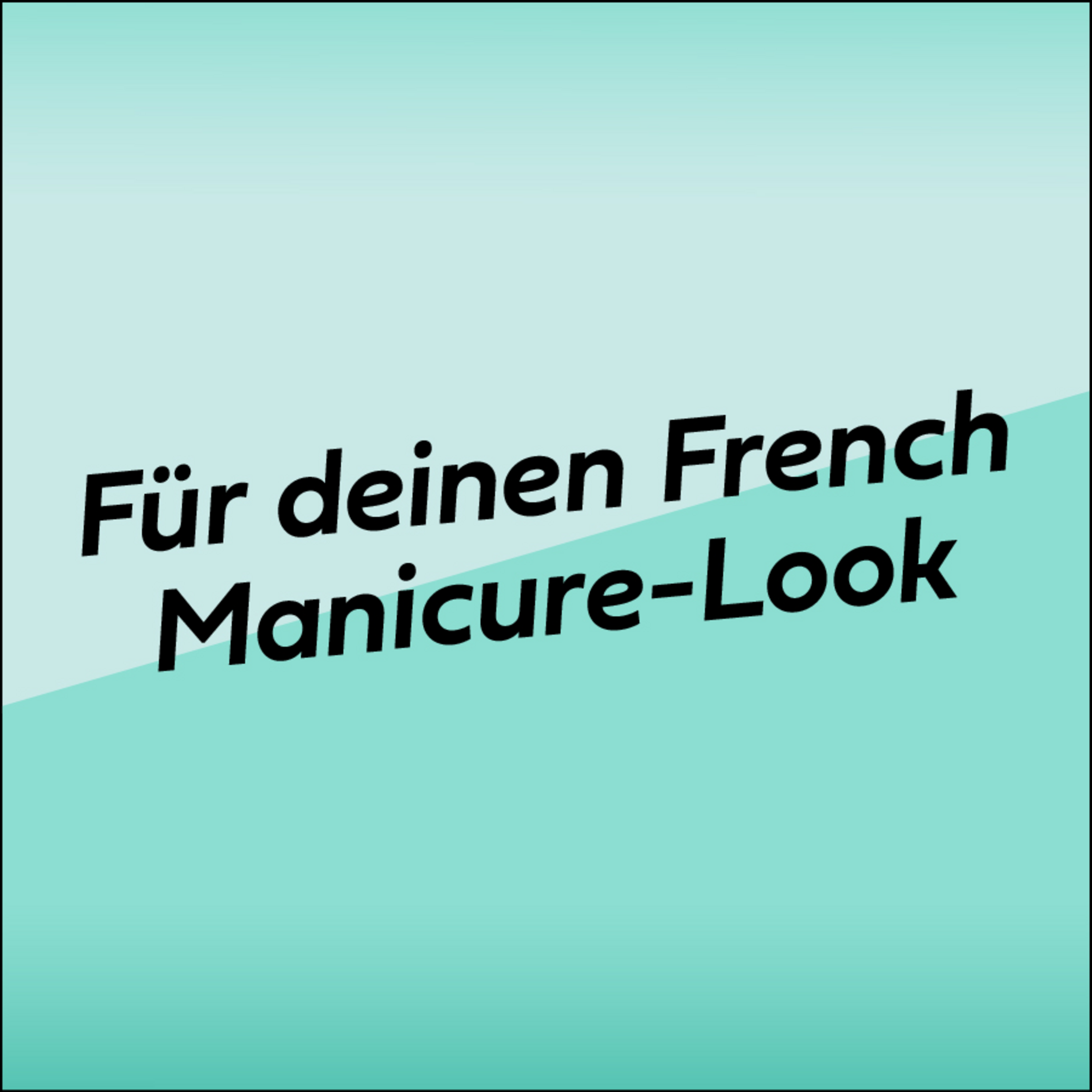 Den Basislack auf den ganzen Nagel auftragen und trocknen lassen. Die Schablone auf den Nagel kleben, so dass die Nagelspitze frei bleibt. Den Weißlack nur auf die Nagelspitze auftragen und trocknen lassen. Die Schablone abziehen. Mit dem Überlack als Finish den ganzen Nagel lackieren.