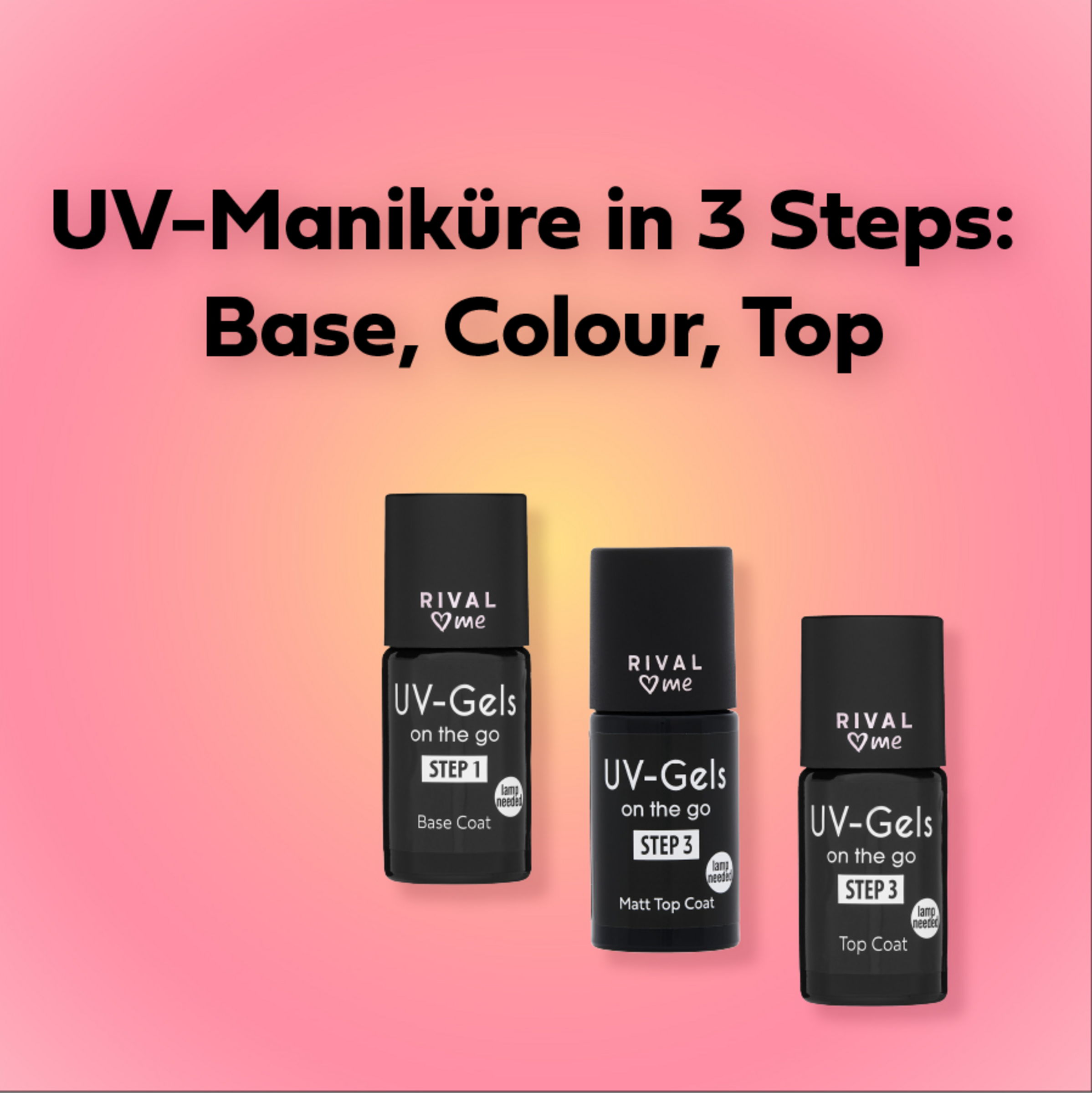 Den Top Coat (Step 3) auf den zuvor aufgetragenen Farblack (Step 2) auftragen und min. 60 Sekunden unter einer UV-LED-Lampe aushärten lassen.