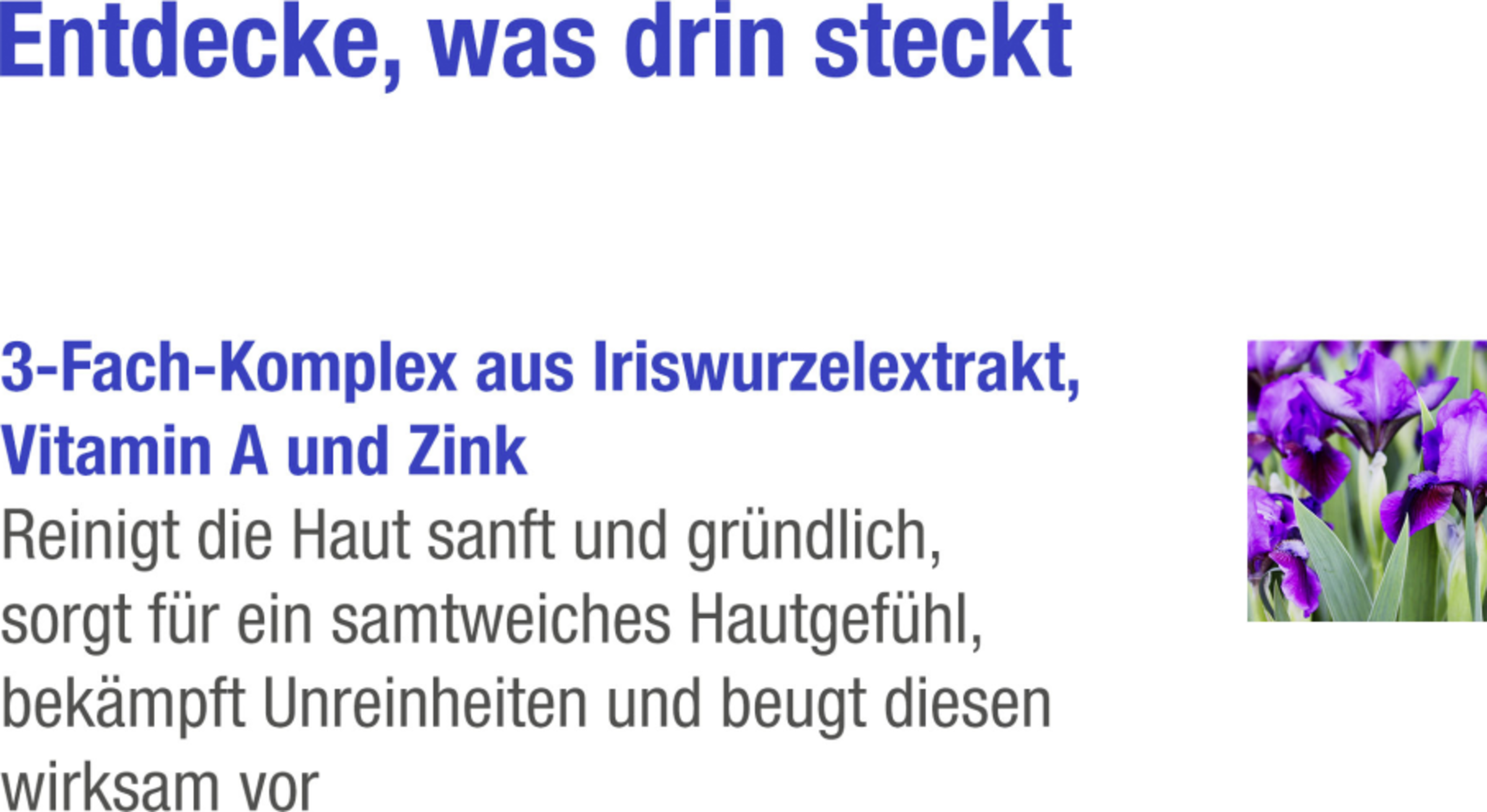 - Innovative Mizellentechnologie, Iriswurzel, Vitamin A und Zink