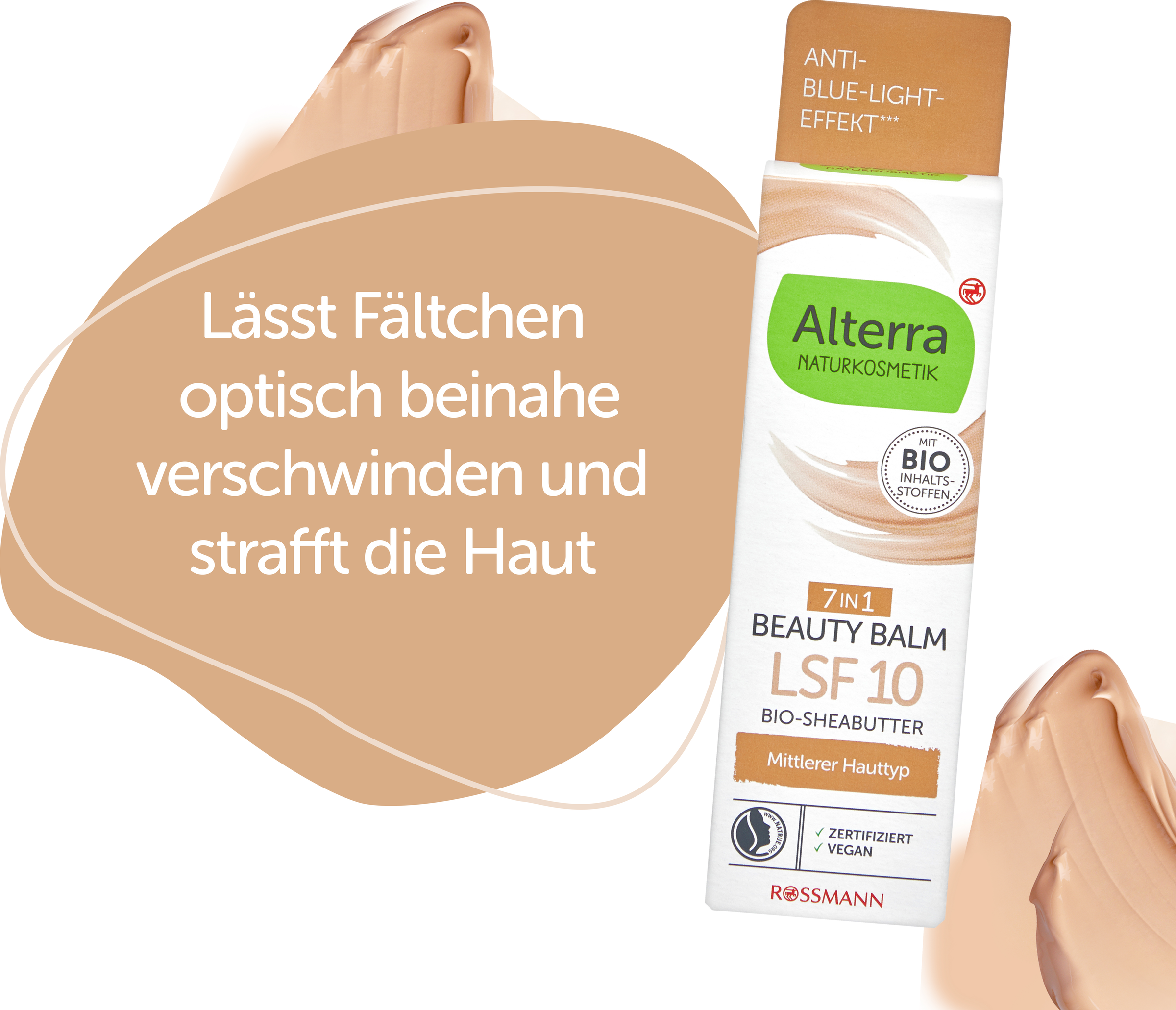 Den Alterra 7in1 Beauty Balm nach Reinigung der Haut sorgfältig auf Gesicht und Hals verteilen und sanft einmassieren.