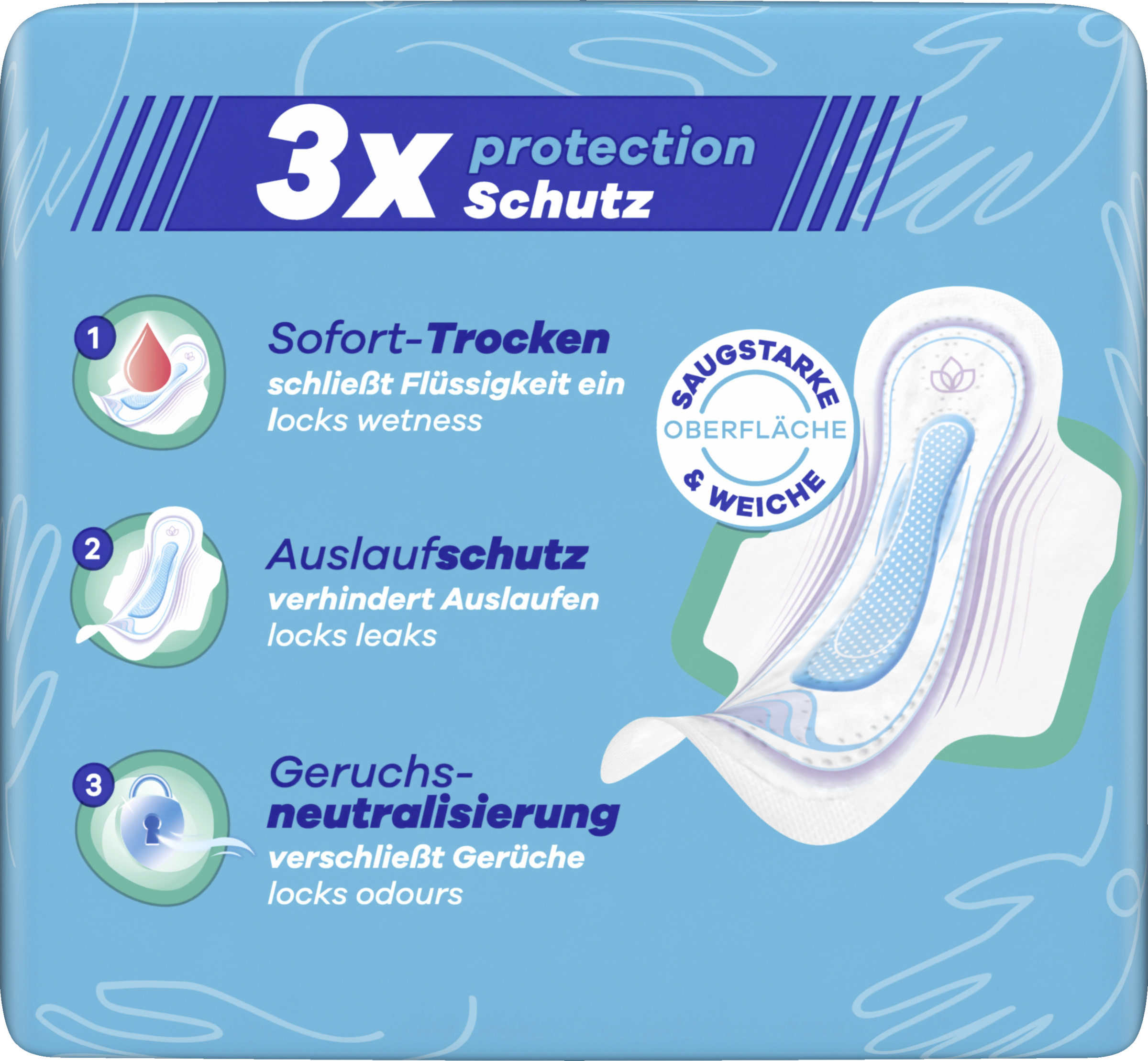 - 3x Schutz für ein frisches und sauberes Gefühl während der Periode