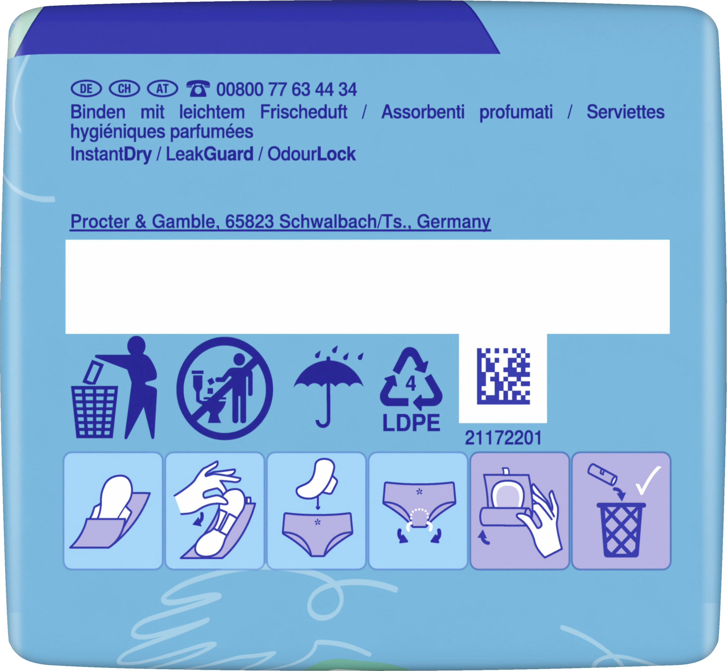 - super saugfähige Binde mit InstantDry-System nimmt Periodenblut sofort auf
