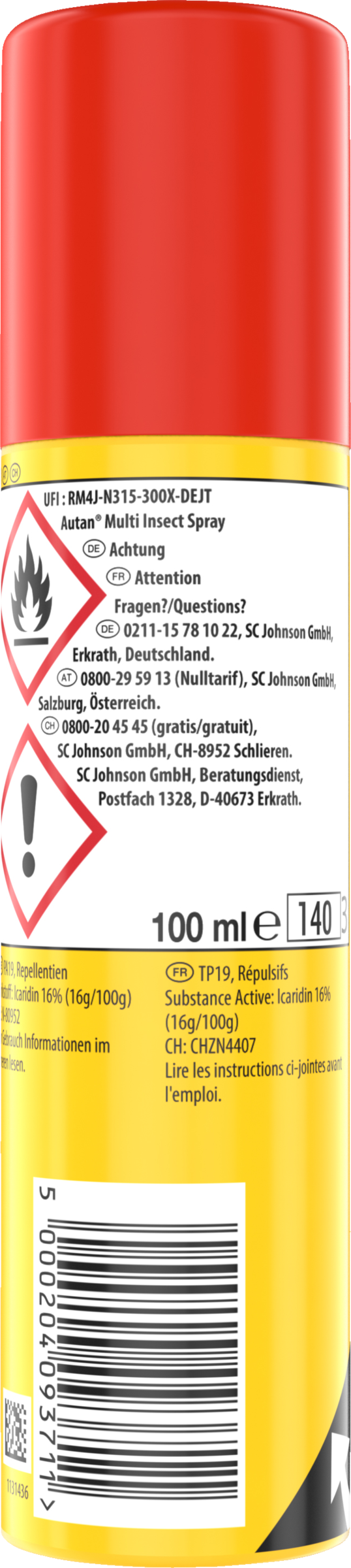 Der Schutz bei einmaligem Auftrag von Autan Multi Insect Spray hält bis zu 8 Stunden Mücken, bis zu 4 Stunden Zecken und bis zu 4 Stunden Stechfliegen fern. Und wirkt auch bis zu 6 Stunden gegen die Tigermücke. Der Wirkstoff Icaridin (auch bekannt unter dem Namen Bayrepel) sorgt dafür, dass Mücken abgehalten werden. Selbstverständlich ist das Autan Spray dermatologisch getestet.