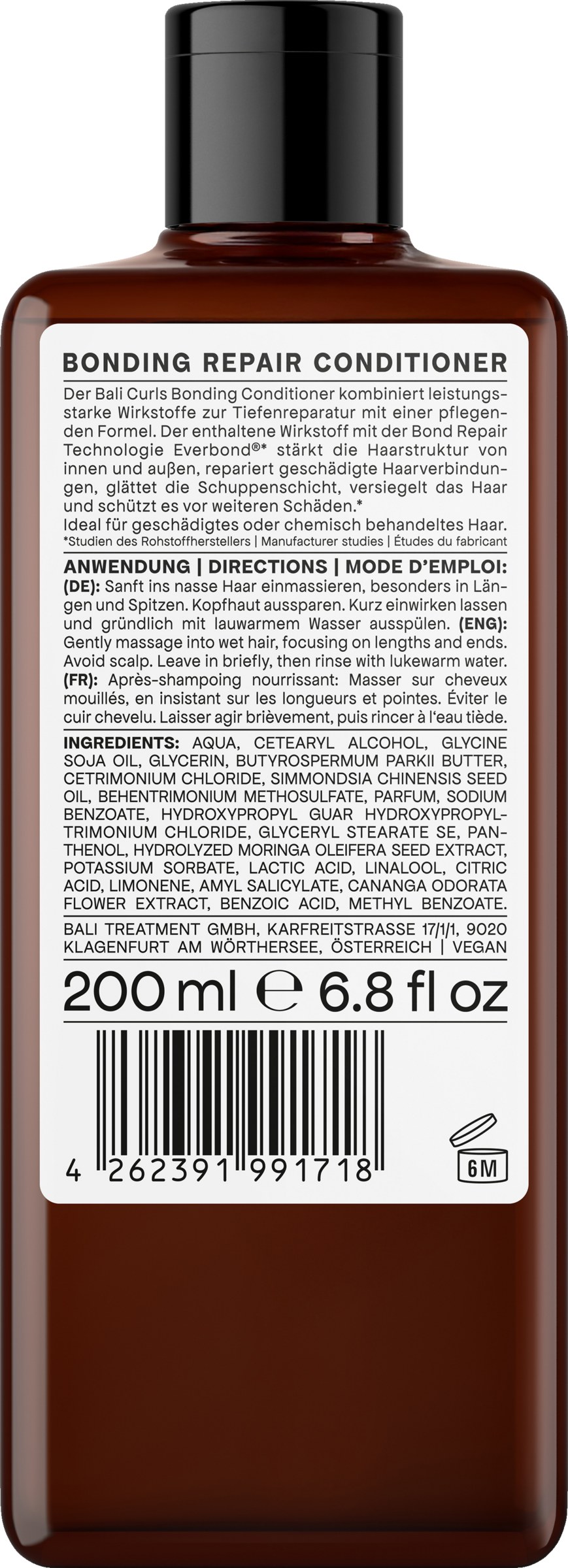 Der Bali Curls Bonding Conditioner kombiniert leistungsstarke Wirkstoffe zur Tiefenreparatur mit einer pflegenden Formel. Der enthaltene Wirkstoff mit der Bond Repair Technologie Everbond®** stärkt die Haarstruktur von innen und außen, repariert geschädigte Haarverbindungen, glättet die Schuppenschicht, versiegelt das Haar und schützt es vor weiteren Schäden.** Ideal für geschädigtes oder chemisch behandeltes Haar.