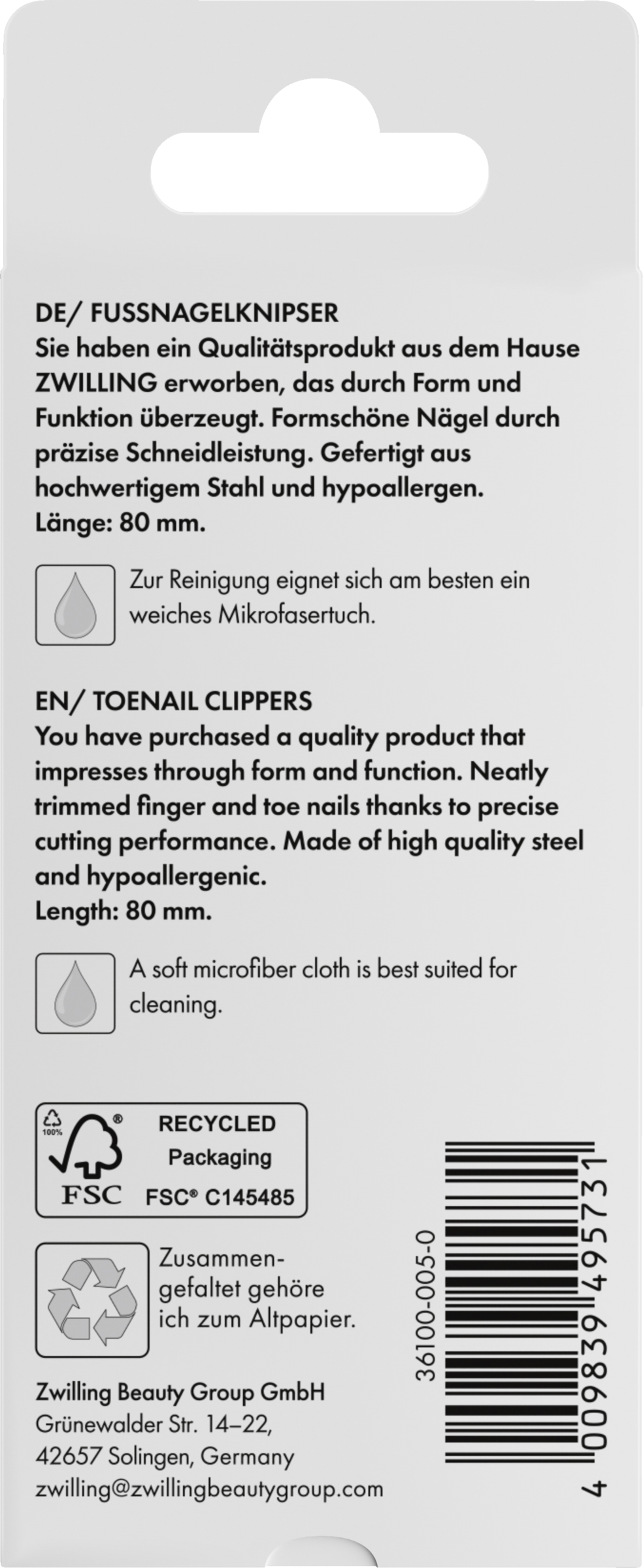 Dies ist ein Qualitätsprodukt aus dem Hause ZWILLING, das durch Form und Funktion überzeugt. Fornschöne Nägel durch präzise Schneidleistung. Gefertigt aus hochwertigem Stahl und hypoallergen. Länge: 80 mm.