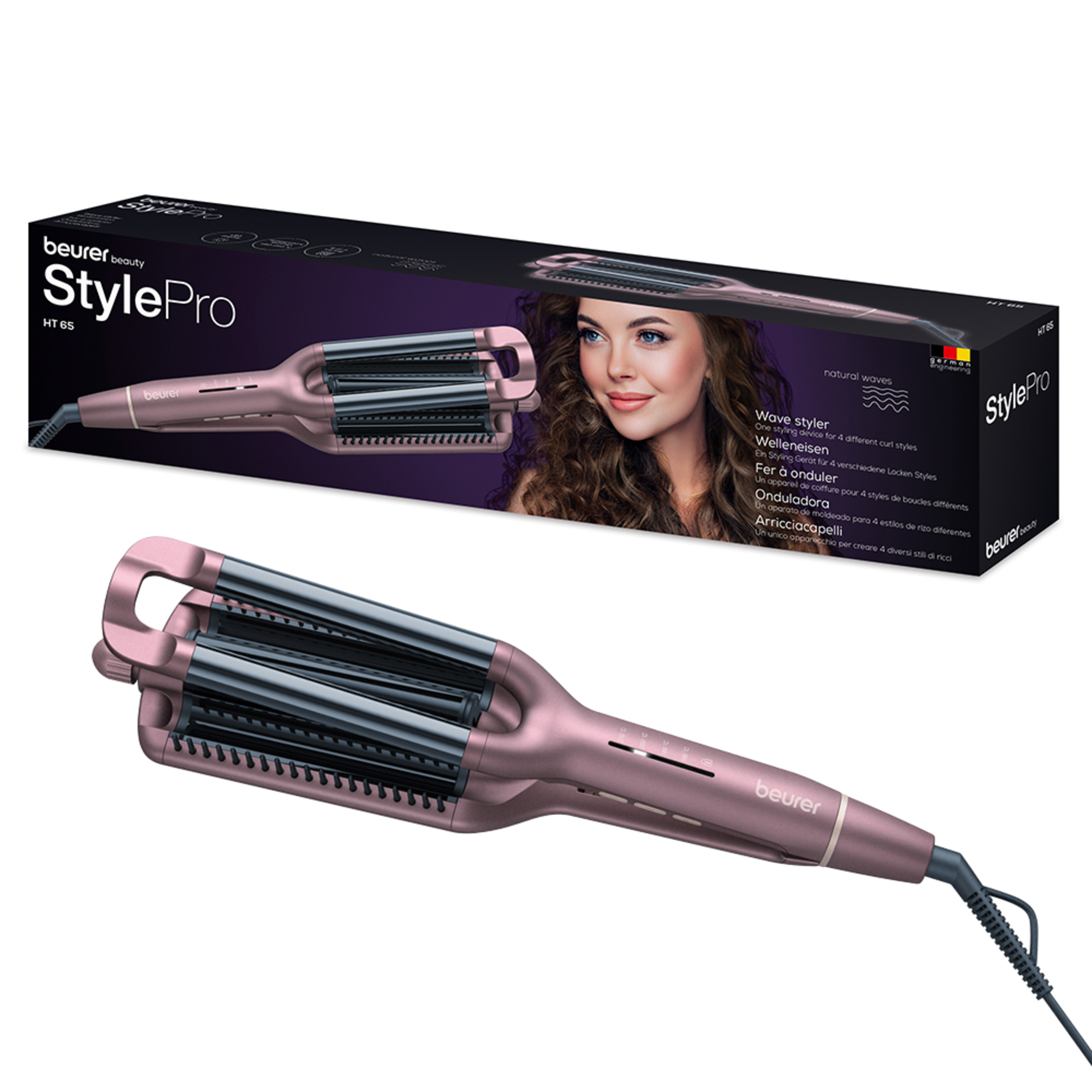 Für stylische Wellen: Mit dem 4-in-1 Welleneisen gelingen Beach Waves, natürlichen Wellen, Mermaid Waves oder Wasserwellen im Handumdrehen. Zum Schutz der Haare ist das Welleneisen mit einer Keramik-Keratin Beschichtung ausgestattet.