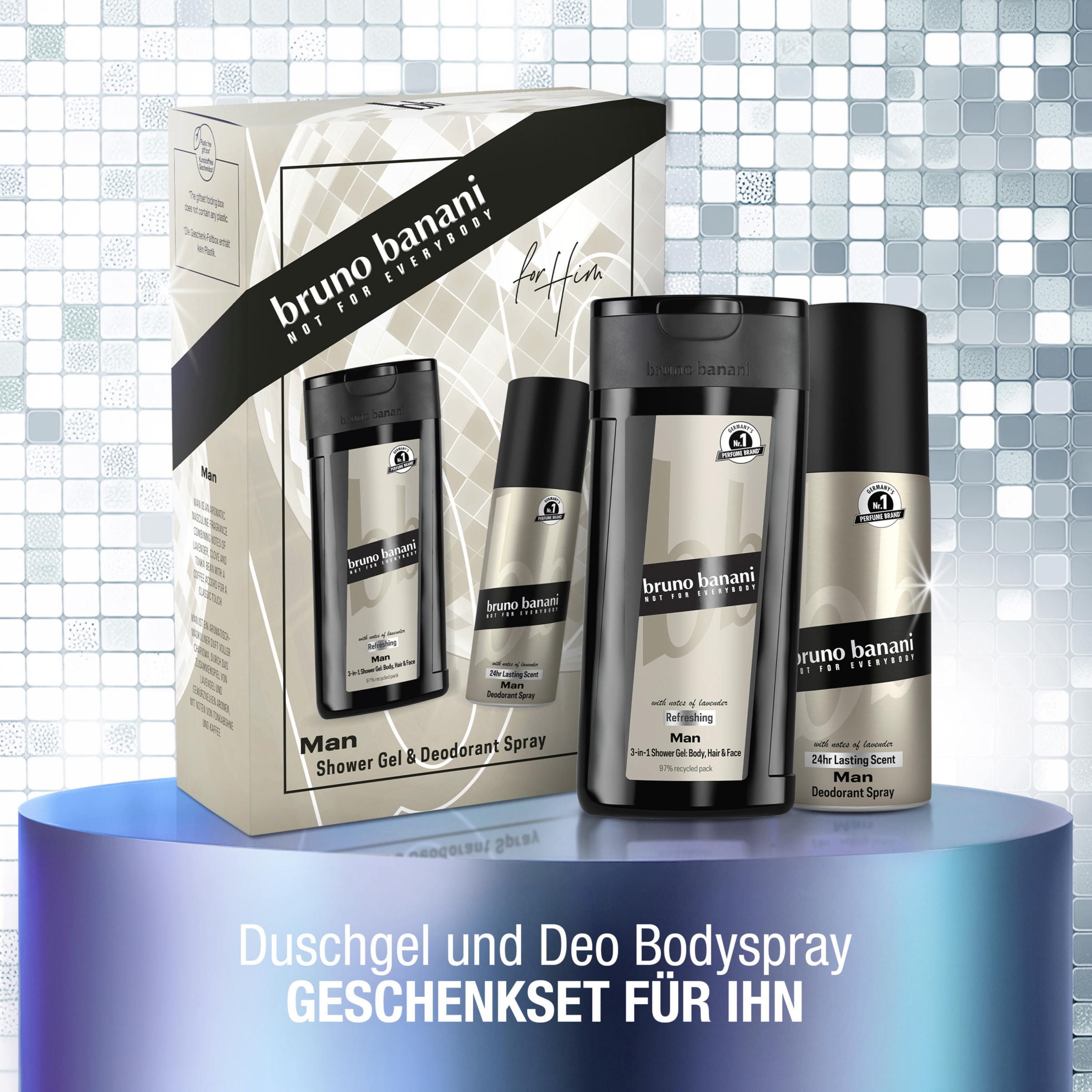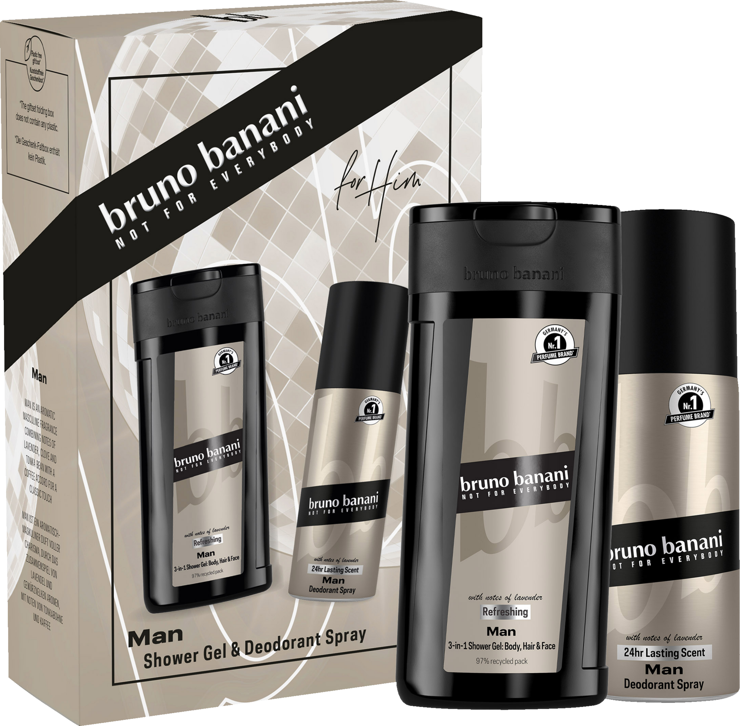 Dieses bruno banani Man Geschenkset für Ihn enthält ein belebendes Duschgel 250ml und ein passendes Deodorant 150ml, ideal für Lebenskünstler und wahre Genießer. Das bruno banani Man Duschgel wurde für einen perfekten Start in den Tag kreiert mit dem ultimativen Support für alle heißen Situationen. Das Duschgel und Deodorant Spray sind optimal aufeinander abgestimmt und bieten eine unkonventionelle Komposition für selbstbewusste Männer, die Zeit haben für ein Augenzwinkern und für ein Lächeln über sich selbst. Das Geschenkset besteht aus einem Deodorant Spray 150 ml sowie einem Duschgel 250 ml.