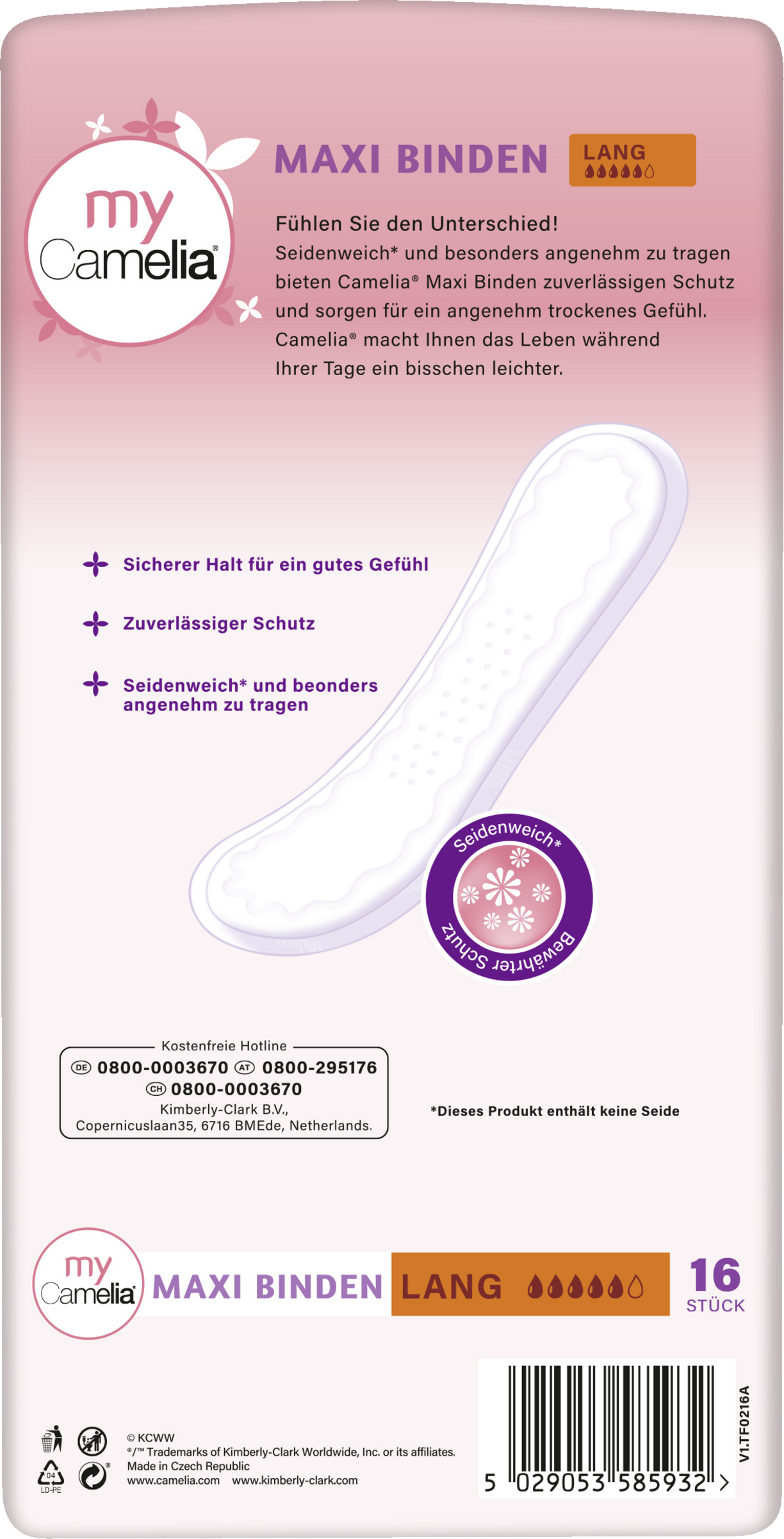 Seidenweich* und besonders angenehm zu tragen bieten Camelia® Maxi Binden zuverlässigen Schutz und sorgen für ein angenehm trockenes Gefühl. Camelia® macht Ihnen das Leben während Ihrer Tage ein bisschen leichter.