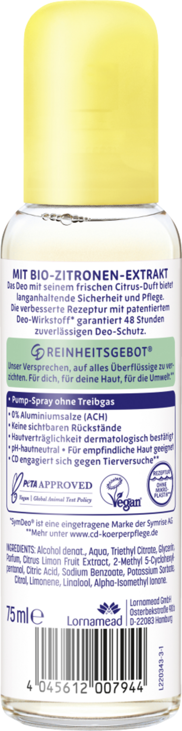 Das Deo mit seinem frischen Citrus-Duft bietet langanhaltende Sicherheit und Pflege. Die verbesserte Rezeptur mit patentiertem Deo-Wirkstoff* garantiert 48 Stunden zuverlässigen Deo-Schutz.