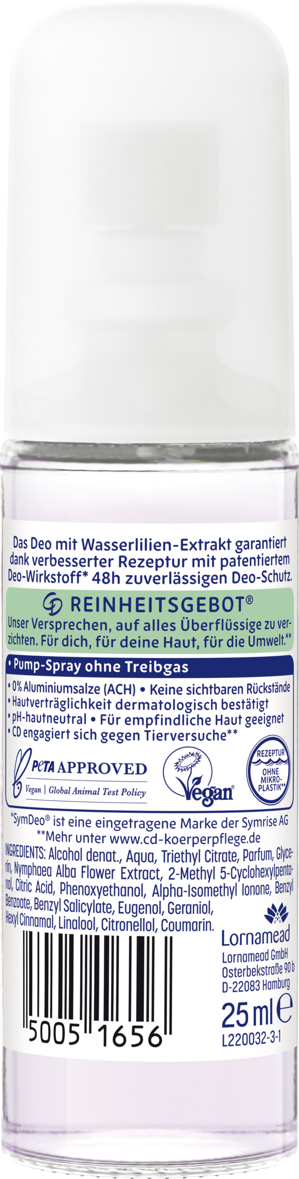 Das Deo mit Wasserlilien-Extrakt bietet lang anhaltende Frische, Sicherheit und Pflege. Die verbesserte Rezeptur mit patentiertem Deo-Wirkstoff* garantiert 48 Stunden zuverlässigen Deo-Schutz.