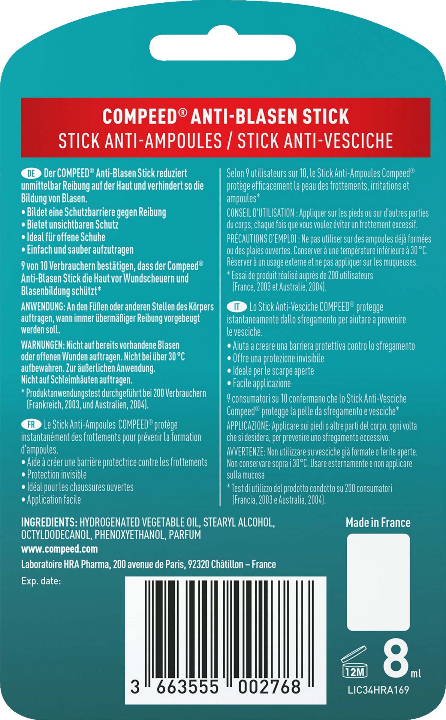 - reduziert sofort und unsichtbar Reibung auf der Haut, um Blasenbildung vorzubeugen