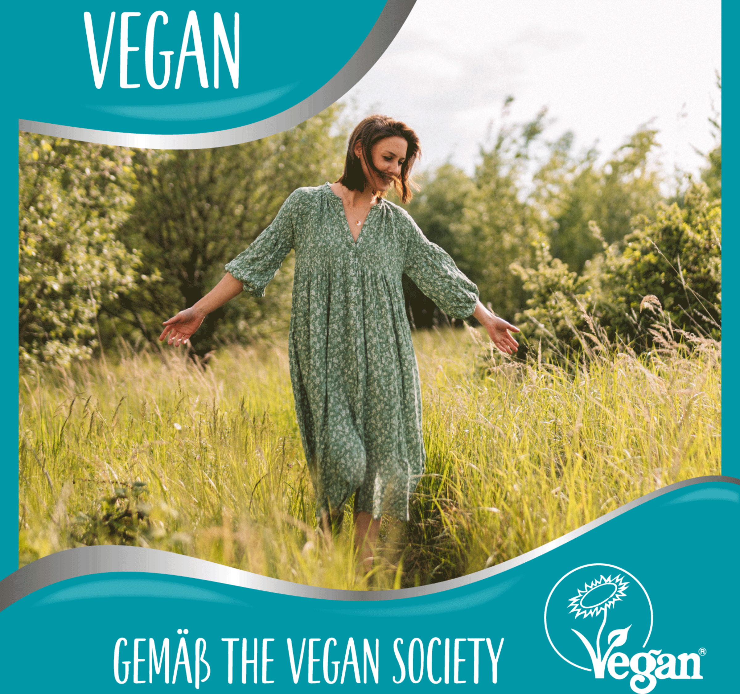- gemäß The Vegan Society ohne Tierversuche und tierische Bestandteile