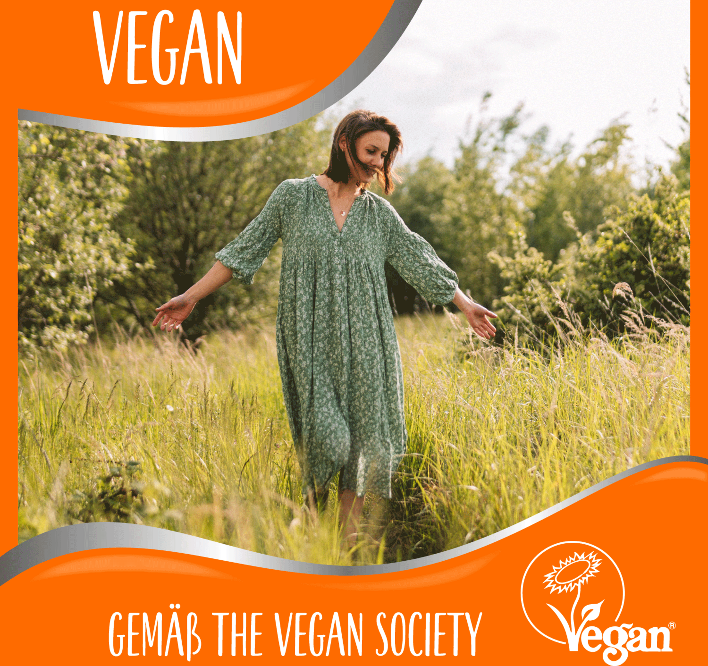 - gemäß The Vegan Society ohne Tierversuche und tierische Bestandteile