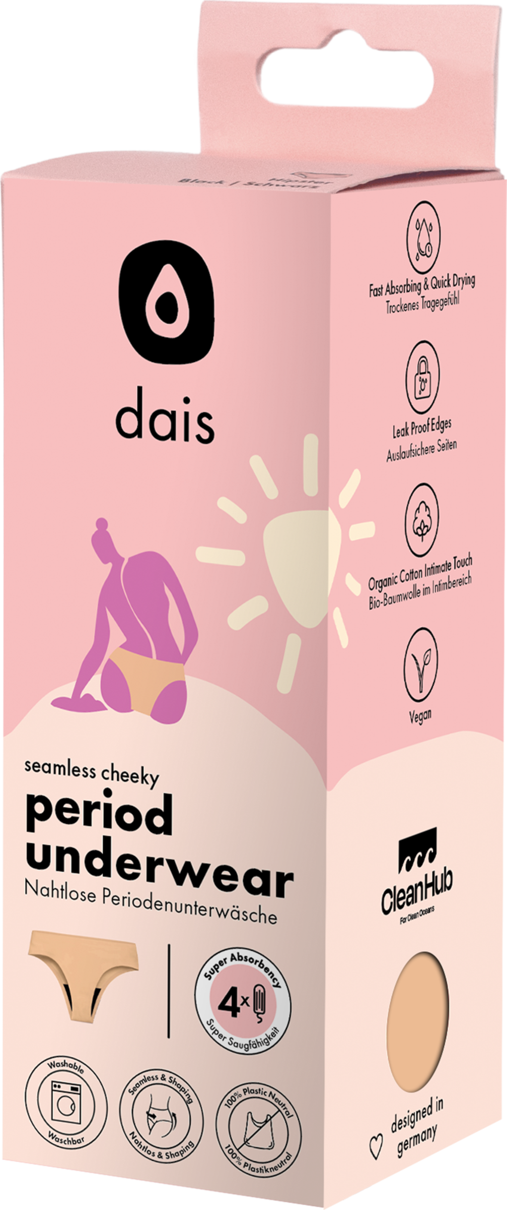 dais Periodenunterwäsche kann bis zu 12 Stunden getragen werden. Vor dem ersten Mal Tragen waschen.