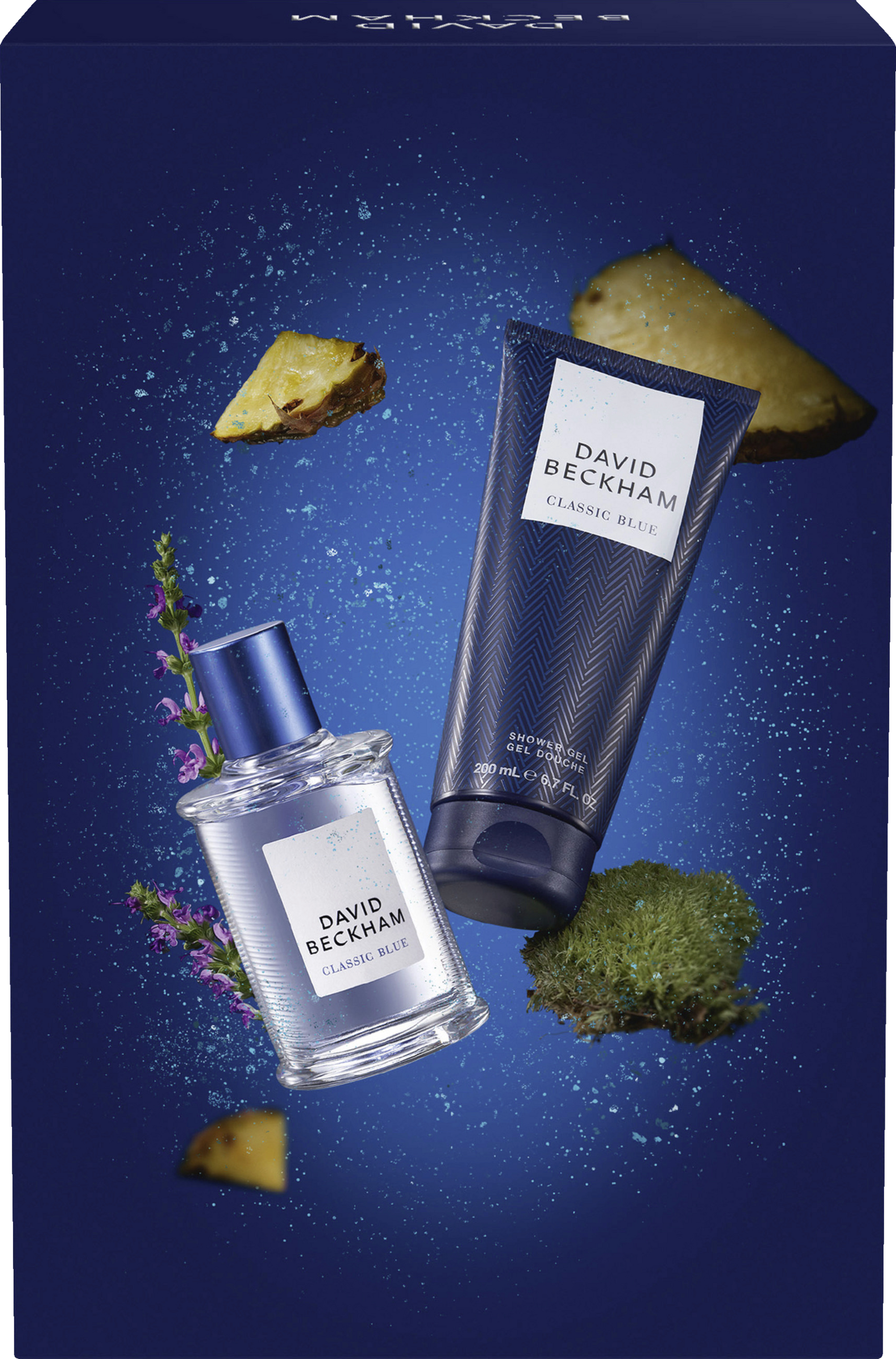 David Beckham Fragrances präsentiert das David Beckham Classic Blue Geschenkset mit Duschgel und Eau de Toilette, die sich durch einen zeitlosen Duft mit einem frischen Touch auszeichnen. Mühelos zu tragen, ob tagsüber oder am Abend. Von Davids authentischem Weg, seiner Lebensweise und seinen Werten inspiriert, öffnet sich dieser lebhafte Herrenduft mit einem fruchtigen Schwall belebender Grapefruit und saftiger Ananas, die mit Veilchenblättern verschmelzen. Die Herznote offenbart eine aromatische Mischung von klarem Muskatellersalbei und Geranium, die von einem spritzigen Akkord von grünem Apfel gezähmt werden. Cashmeran, Patschuli und Moos verleihen Classic Blue seine elegante Signatur. Die Classic Collection ist eine faszinierende Neuinterpretation der Kraft der Klassiker. Jeder Duft wurde sorgsam mit speziell ausgesuchten, bewährten Ingredienzien komponiert.Das Geschenkset beinhaltet 1x Classic Blue EdT 50 ml und 1x Classic Blue Duschgel 200 ml.