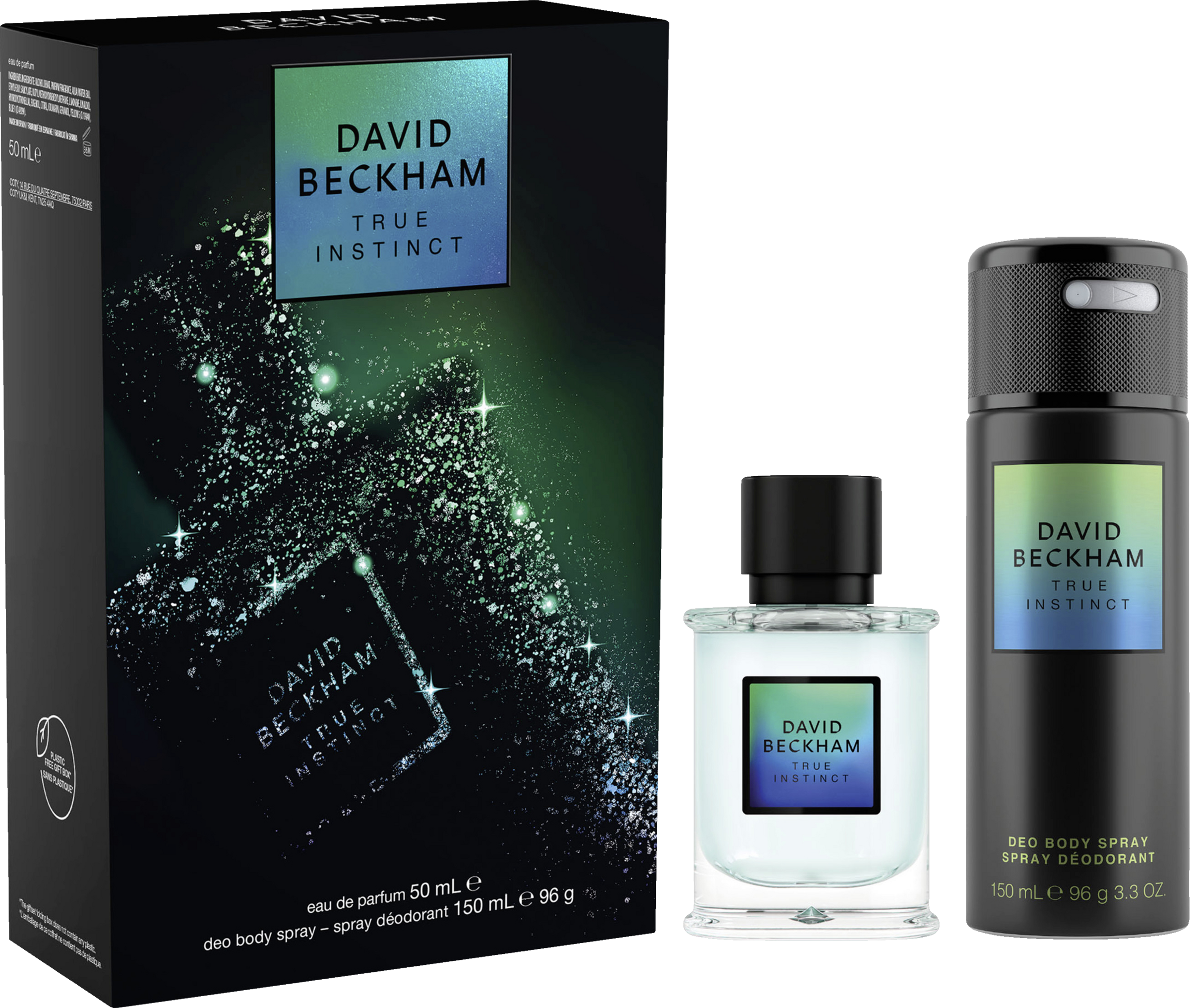 Präsentiert von David Beckham Fragrances: das Geschenkset von David Beckham True Instinct, dem Duft für selbstbewusste Männer, die wissen wer sie sind und zu ihrer Persönlichkeit stehen. Das Set enthält das David Beckham True Instinct Eau de Parfum und das passende Deo-Körperspray. Der eindrucksvolle Amber-Duft wurde von Davids Selbstvertrauen und Freigeist inspiriert. Der fesselnde Duft eröffnet mit frischen Noten von grünen, harzigen Piniennadeln, die von einer warmen und sinnlichen Herznote, die auf maskulinen Zedernholznoten aufbaut, kontrastiert wird. In der Basisnote verleiht Vetiver der unvergesslichen Signatur eine verführerische, erdige Tiefe. Das Deo-Körperspray spendet sofortige Frische und ist die ideale Ergänzung für ein intensives Dufterlebnis. Verpackt in einer attraktiven Geschenkverpackung, sind der Duft und das Spray das perfekte Geschenk für einen ganz besonderen Menschen.
