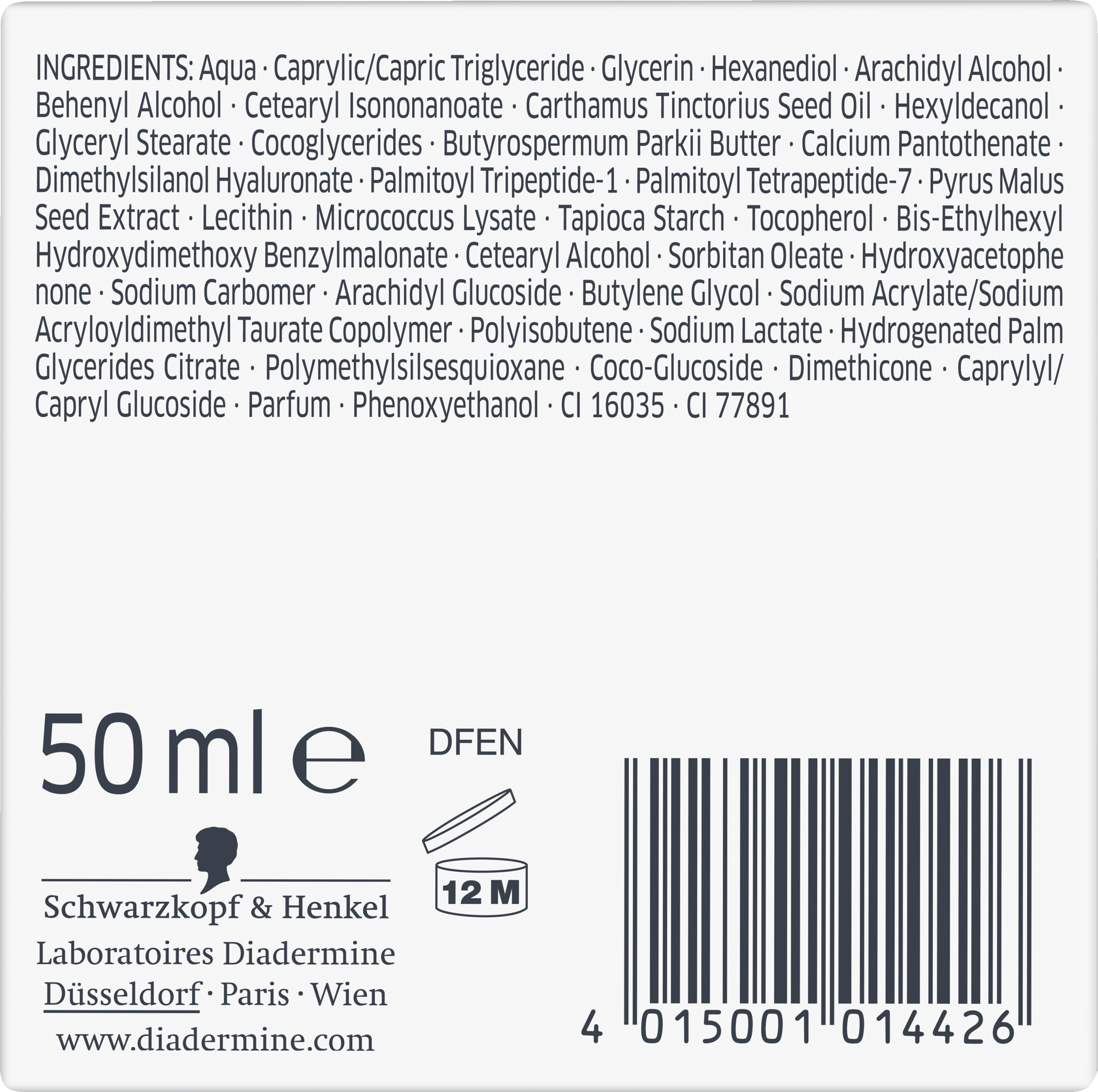 Aqua, Caprylic/Capric Triglyceride, Glycerin, Hexanediol, Arachidyl Alcohol, Behenyl Alcohol, Cetearyl Isononanoate, Carthamus Tinctorius Seed Oil, Hexyldecanol, Glyceryl Stearate, Cocoglycerides, Butyrospermum Parkii Butter, Micrococcus Lysate, Palmitoyl Oligopeptide, Palmitoyl Tetrapeptide-7, Pyrus Malus Seed Extract, Dimethylsilanol Hyaluronate, Lecithin, Tocopherol, Bis-Ethylhexyl Hydroxydimethoxy Benzylmalonate, Sodium Lactate, Sorbitan Oleate, Cetearyl Alcohol, Dimethicone, Tapioca Starch, Arachidyl Glucoside, Butylene Glycol, Sodium Acrylate/Sodium Acryloyldimethyl Taurate Copolymer, Polyisobutene, Hydrogenated Palm Glycerides Citrate, Polymethylsilsesquioxane, Sodium Carbomer, Coco-Glucoside, Parfum, Ethylhexylglycerin, Phenoxyethanol, CI 16035, CI 77891