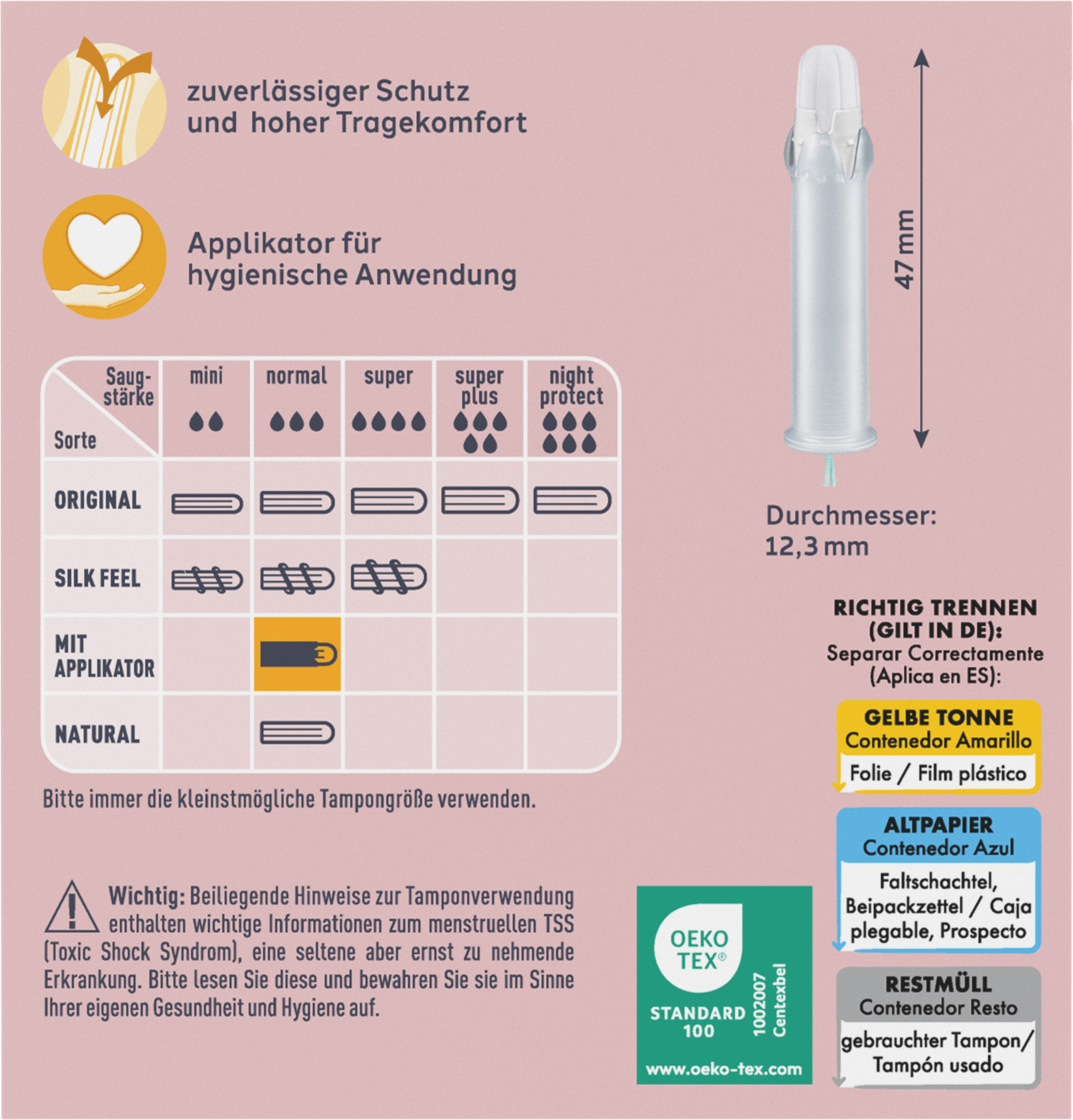 - Maße Applikator: Durchmesser: ca. 12,5 mm; Länge: ca. 47 mm
