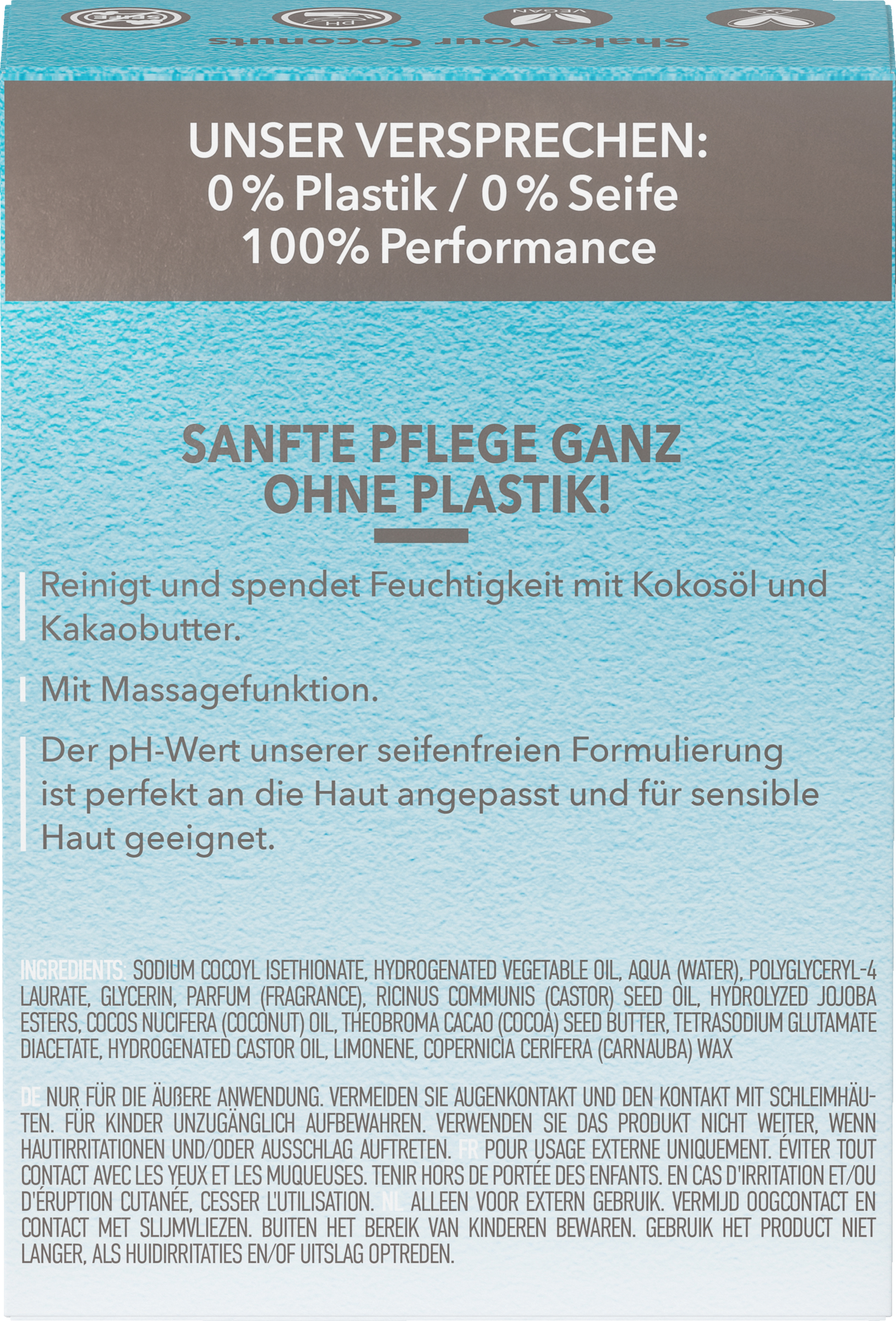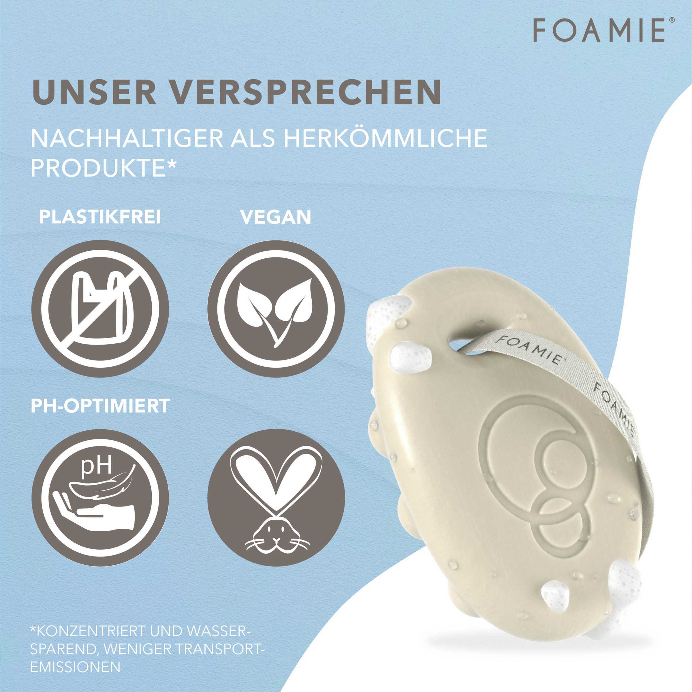Die Foamie Feste Duschpflege spendet intensive Feuchtigkeit mit Kokosöl und Kakaobutter. 3in1 Pflege: Massiert, reinigt und pflegt.