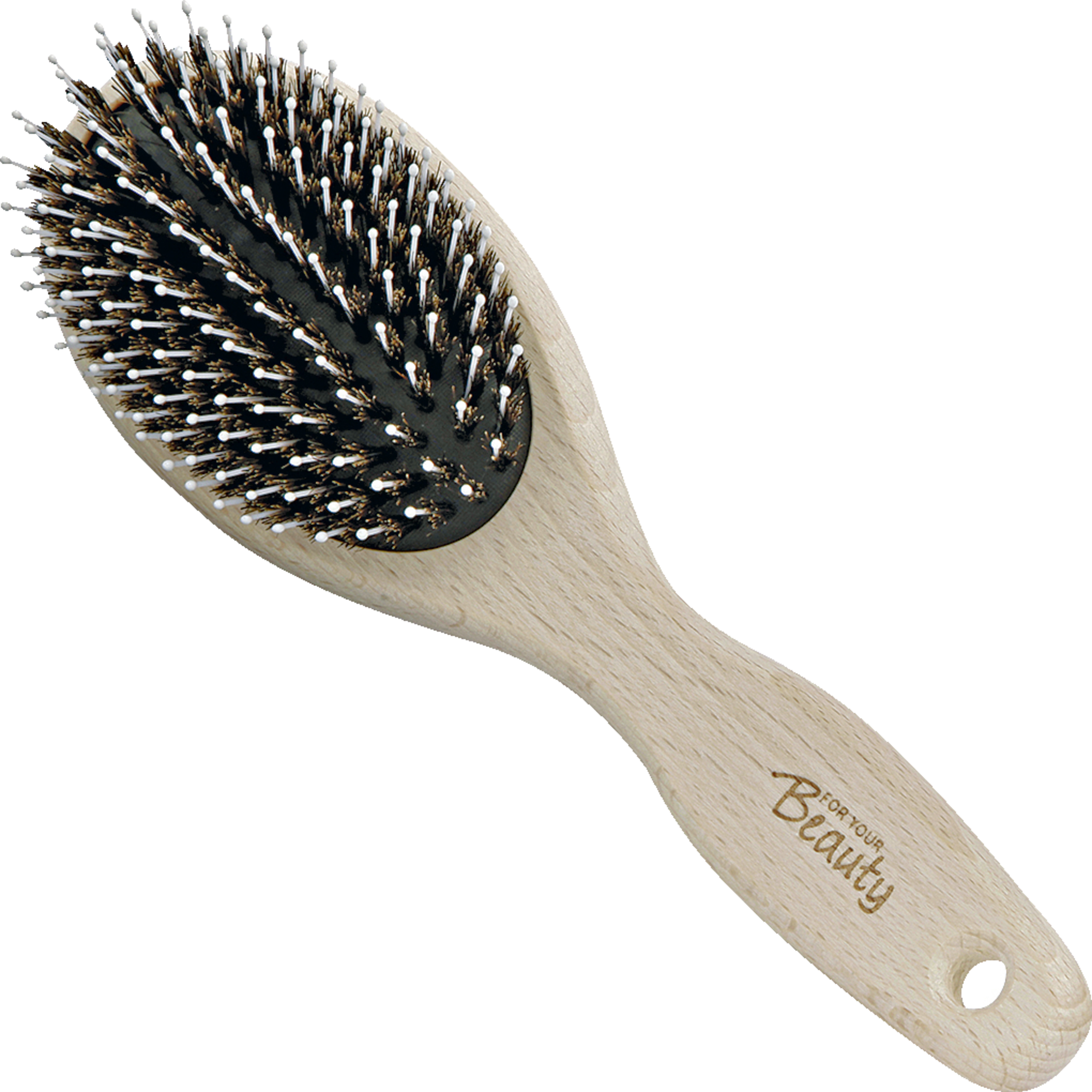 Mit dem Ziel der Erhaltung unserer Waldressourcen wird das hochwertige Buchenholz der for your Beauty Haarbürsten aus ökologisch-nachhaltiger und umweltfreundlicher Bewirtschaftung europäischer Wälder gewonnen. Für gepflegtes und seidig glänzendes Haar sorgen bei dieser Haarbürste die reinen Naturborsten in Verbindung mit abgerundeten Kunststoffpins. Zusätzlich verwöhnen Sie Ihre Kopfhaut mit einer wohltuenden, die Durchblutung anregende Kopfmassage. Diese Haarbürste ist für alle Haarlängen und -typen geeignet.
