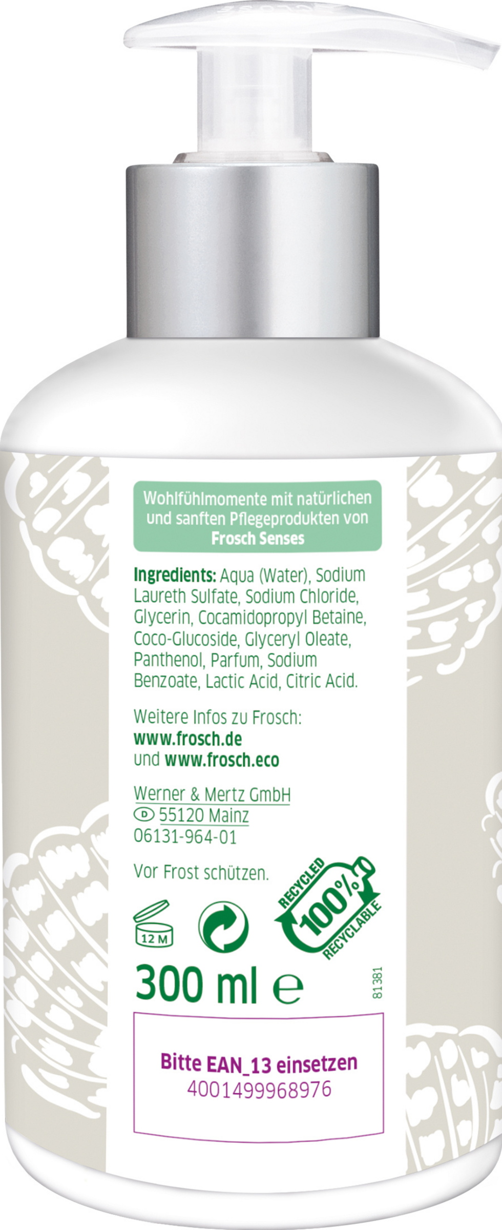 Die Frosch Senses Deko Sensitivseife pflegt die Hände dank ausgewählter Inhaltsstoffe naturnaher Kosmetik und hilft, sie bei jedem Händewaschen vor dem Austrocknen zu schützen. Die hypoallergene & pH-hautneutrale Rezeptur ist frei von Mikroplastik, Parabenen, EDTA & tierischen Inhaltsstoffen. Seifenspender mit verschiedenen Motiven.