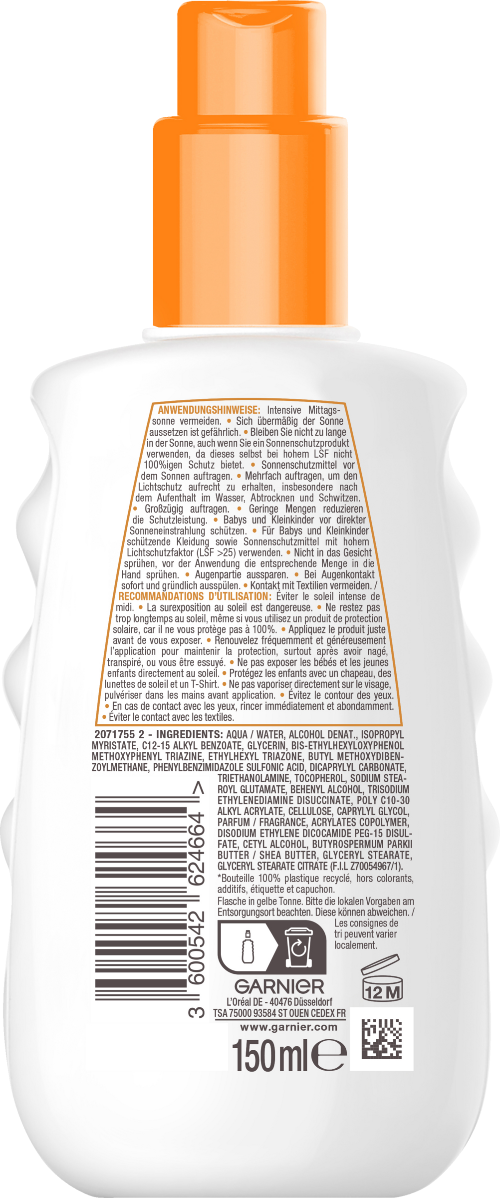 Das Garnier Ambre Solaire Hydra Protect+ 24h Sonnenschutz-Spray vor dem Sonnenbaden großzügig auf den Körper auftragen und anschließend sanft einmassieren. Für die Anwendung im Gesicht das Sonnenschutz-Spray in die Hände sprühen und mit diesen auf dem Gesicht verteilen. Augenkontakt vermeiden. Darüber hinaus sollte der Sonnenschutz regelmäßig, vor allem nach einem Aufenthalt im Wasser, Schwitzen oder nach dem Abtrocknen, aufgefrischt werden, um einen hohen Schutz aufrechtzuerhalten. Mittagssonne meiden.