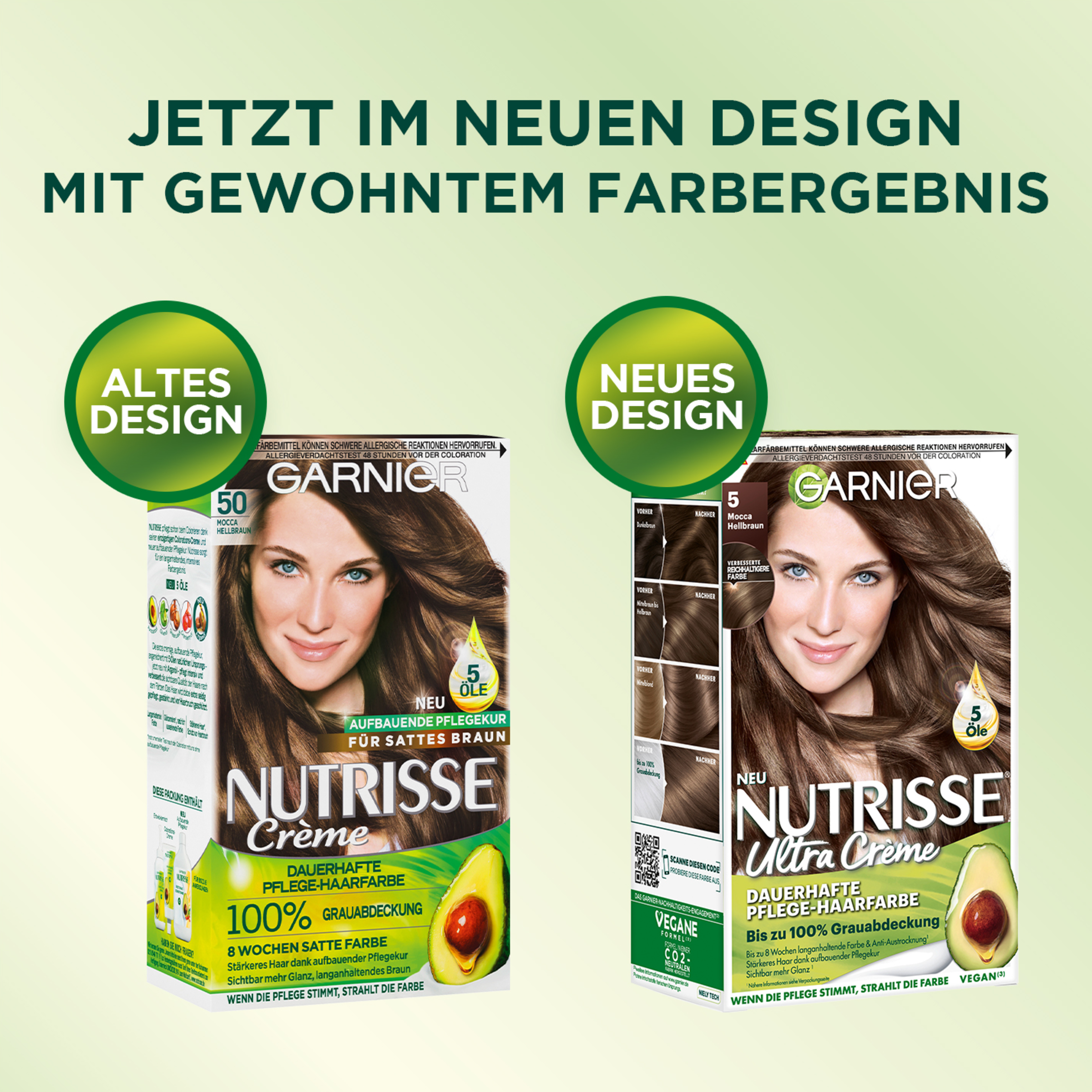 Garnier Nutrisse Creme verleiht dem Haar seidig strahlenden Glanz. Sogar graue Haare werden zu 100 % abgedeckt. Das Ergebnis ist eine Haarfarbe mit einem harmonischen Farbverlauf, das 8 Wochen lang farbintensiv strahlt. Besonders angenehm ist die einfache Anwendung der Coloration. Dank der Creme-Textur tropft sie nicht und lässt sich gleichmäßig ins Haar einarbeiten. Dabei versorgt sie das Haar intensiv mit Pflege, denn die Formel ist mit 5 Fruchtölen angereichert: Olive, Shea-Nuss, Avocado, Argan und Cranberry nähren das Haar in der Tiefe. Mit dem fruchtigen Duft wird das Colorieren zu einem sinnlichen Erlebnis.