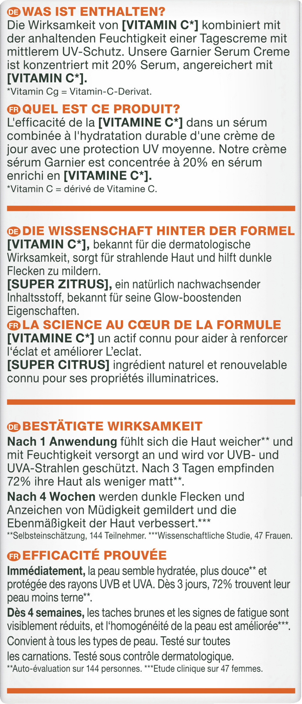 - mit der Garnier SkinActive Vitamin C Serum Crème wird eine 72H feuchtigkeitsspendende Tagescreme mit der Wirksamkeit eines Serums kombiniert